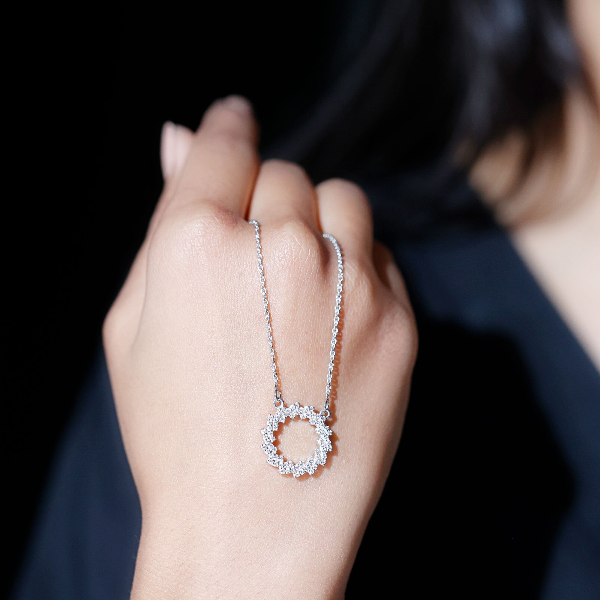 Welcome to a world where your uniqueness is celebrated through the brilliance of diamonds. Our Diamond Necklace is a delicate testament to your individuality and elegance. Fashioned from the finest metal, this Eternity Necklace features an open circle created with curved bars adorned with dainty round cut diamonds of EF-VS Quality. Whether it’s a quiet morning coffee date, a night out with loved ones, or those milestone celebrations, this Open Circle Necklace will stack gently on your neckline as a symbol of your inner sparkle. Every gemstone in this Round Necklace is lab grown and it comes with a certificate of authenticity, giving you complete peace of mind about your purchase.