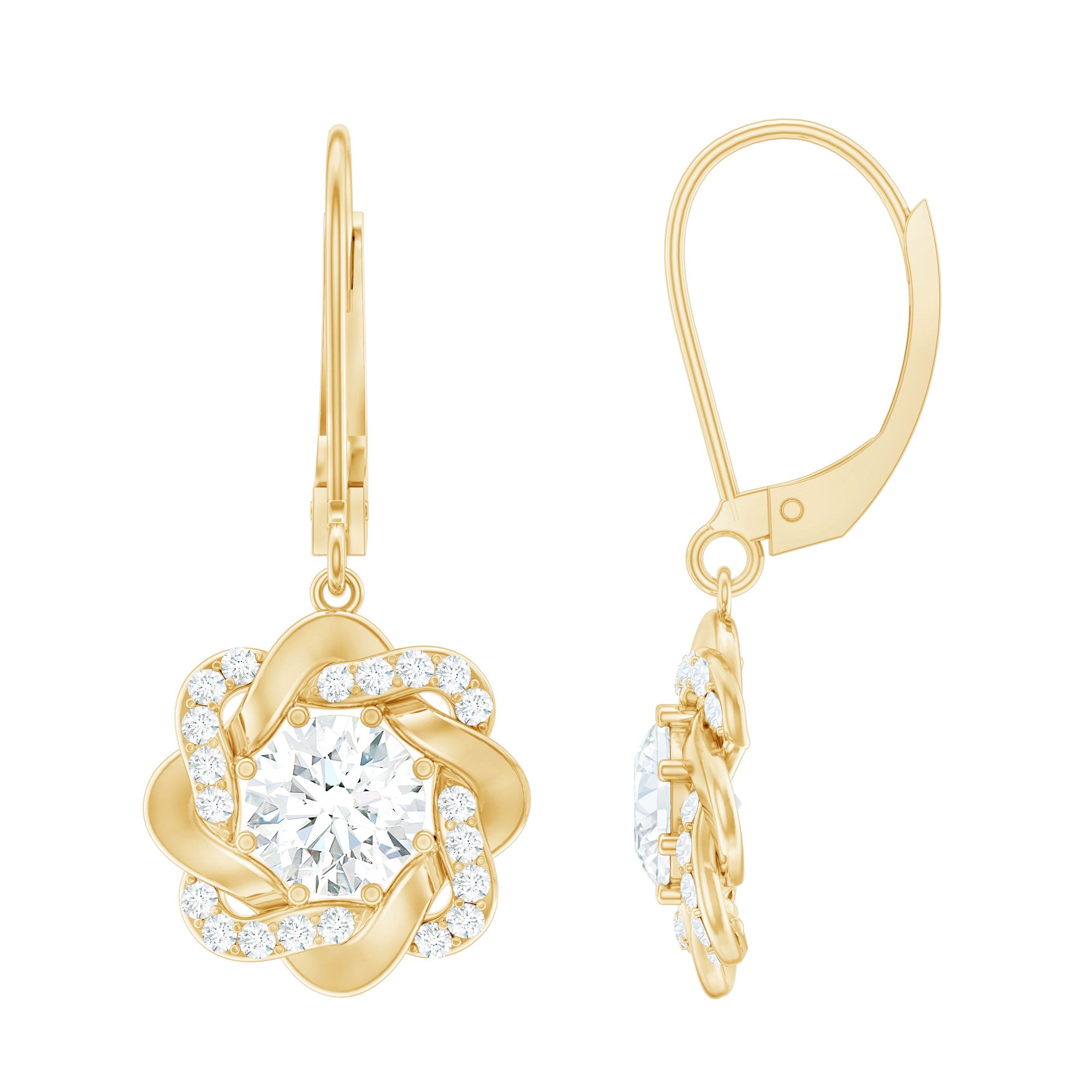 Let your style blossom with these Diamond Drop Earrings, designed to add a touch of natures grace to your jewelry collection. These beauties feature a radiant 6 MM round cut lab grown diamond of EF-VS Quality set in prong setting, surrounded by a floral motif. The intertwined curves of the flower are adorned with smaller diamonds that enhance the overall shimmer. These Flower Dangle Earrings are handcrafted with a secure and comfortable lever back closure, they stay in place allowing you to move with confidence. These Nature Inspired Diamond Earrings are a versatile addition to your jewelry collection, perfect for a wedding, cocktail party, or any grand celebration - wear them and watch every eye in the room turn to you.