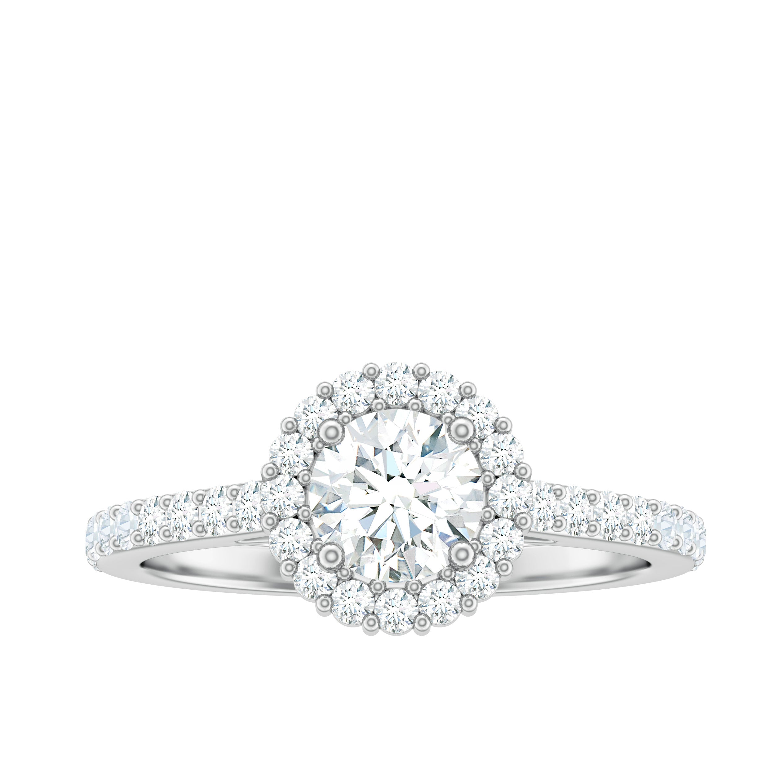 Lab Grown Diamond Halo Engagement Ring With Side Stones