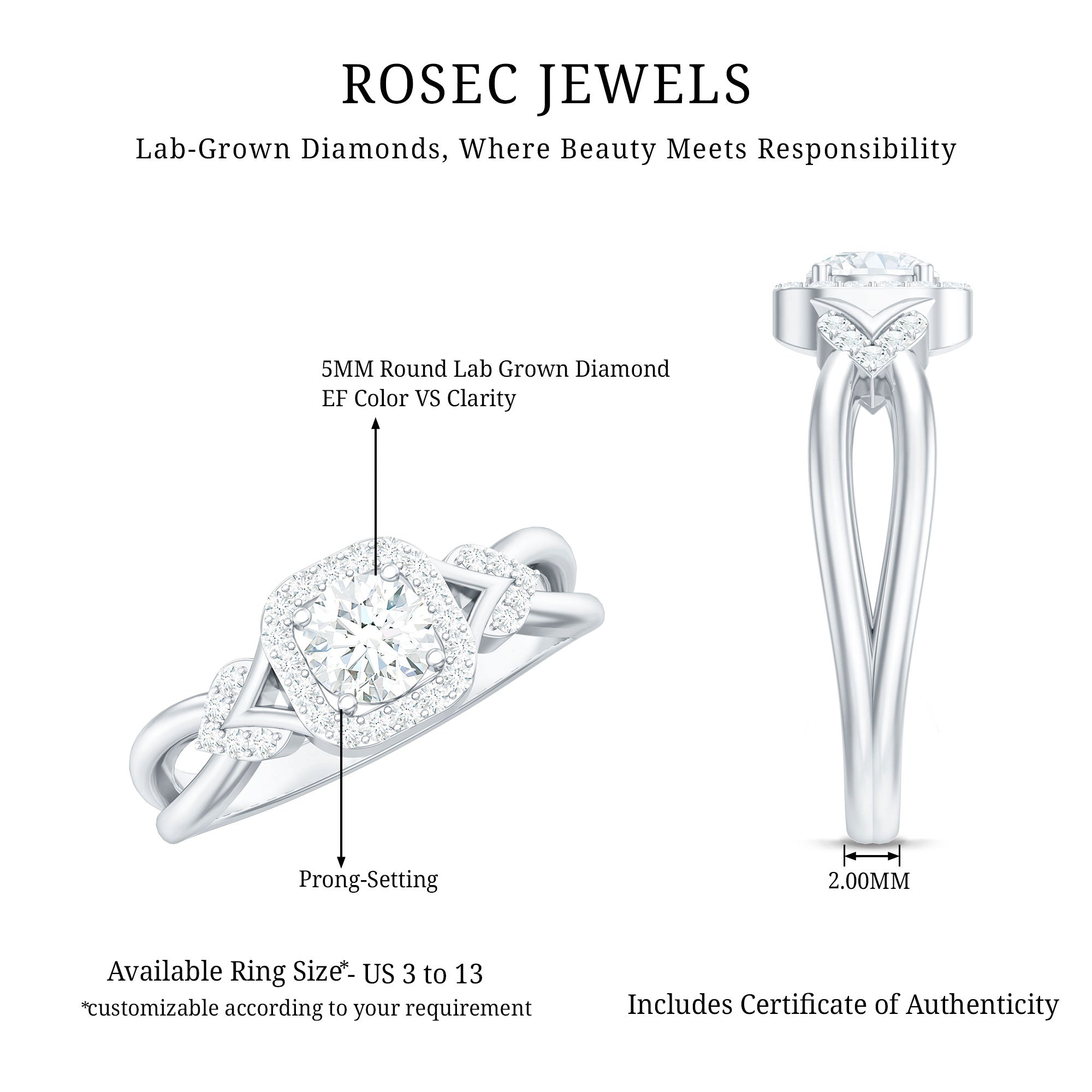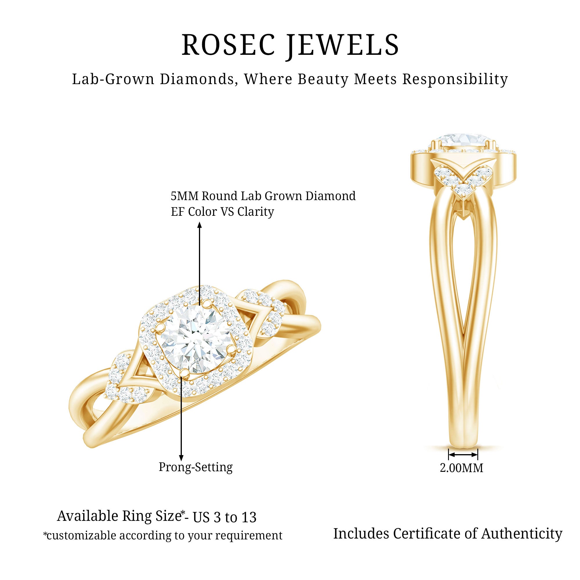 Embark on a timeless journey of love with this Diamond Engagement Ring, a masterpiece of enduring elegance and sophistication. Crafted with attention to detail, this Classic Engagement Ring showcases a 5x5 mm Round Shape Lab Grown Diamond, encircled by a Halo, embodying brilliance. Set in a gracefully designed band, this Diamond Ring is a symbol of everlasting commitment. Ef-Vs Quality Diamonds embedded in the ring synonymous the unparalleled craftsmanship, creates designer jewelry, that exudes timeless elegance.