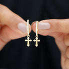 Lab Grown Diamond Holy Cross Hoop Drop Earrings For Women