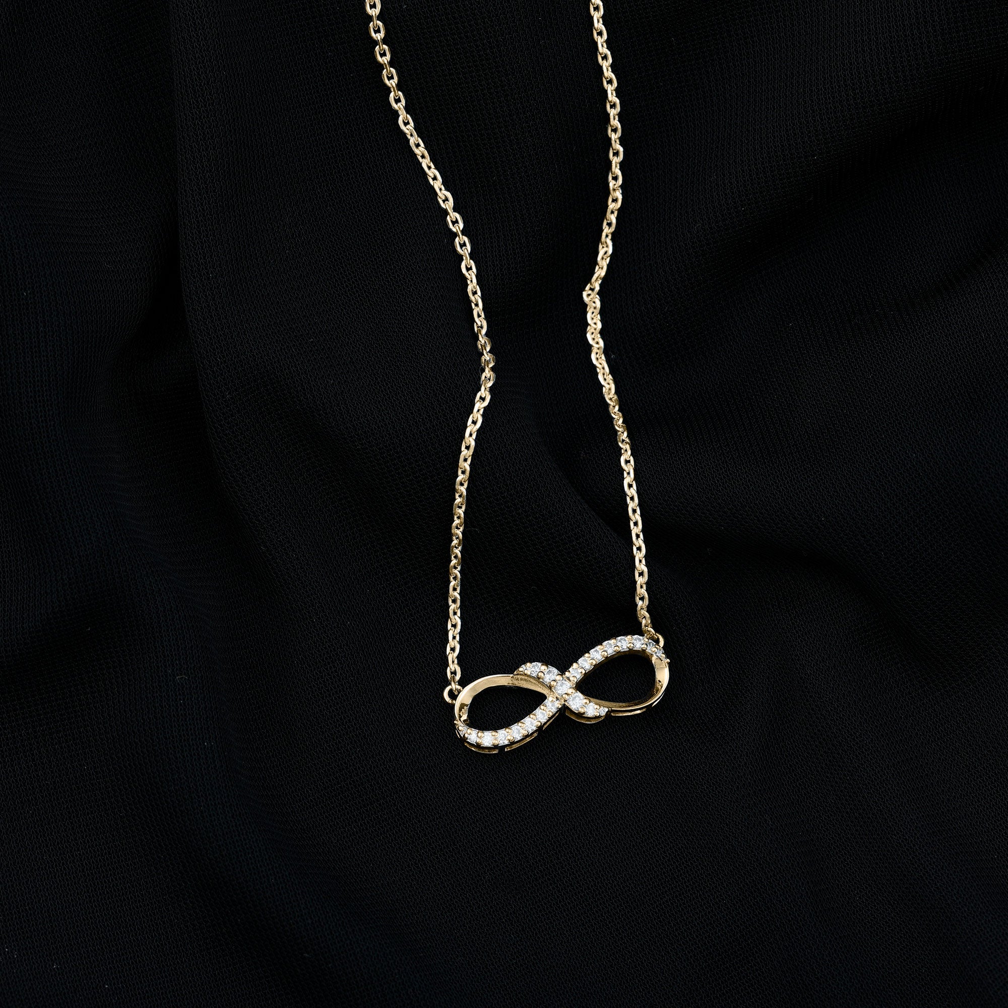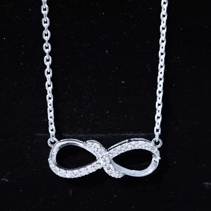 Show your never ending love to your lady by presenting this stunning Diamond Infinity Necklace. This Minimalist Necklace features an infinity loop decorated with dainty round shaped pave set diamonds. The Lab Grown Diamond Pendant Necklace is a classic and designer piece of jewelry perfect for any occasion. Whether you are celebrating an anniversary, a milestone, or simply expressing your love, this Forever Necklace is the perfect symbol of eternity. Gift her something that shines as brightly as she does, because she deserves nothing but the best.