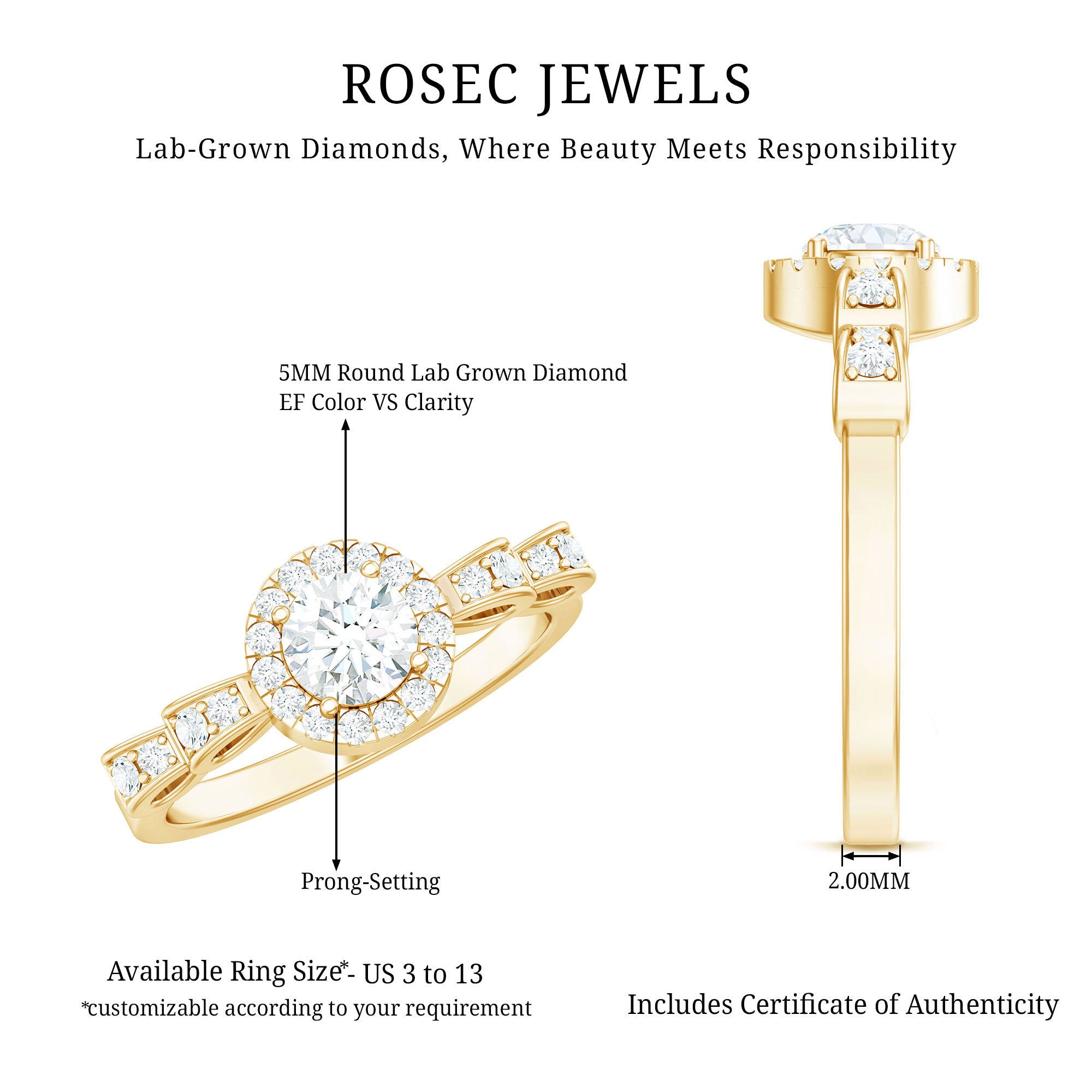 Sparkle with understated elegance. This Minimal Promise Ring is a symbol of timeless commitment. The delicate design, crafted with perfection, showcases shimmering 5x5 mm Round Shape Lab Grown Diamond gemstones that radiate brilliance. The designer band complements Ef-Vs Quality Diamond, creating a harmonious balance between simplicity and sophistication. Rosec Jewels provides you captivating Classic Diamond Ring that reflect both your style and values.