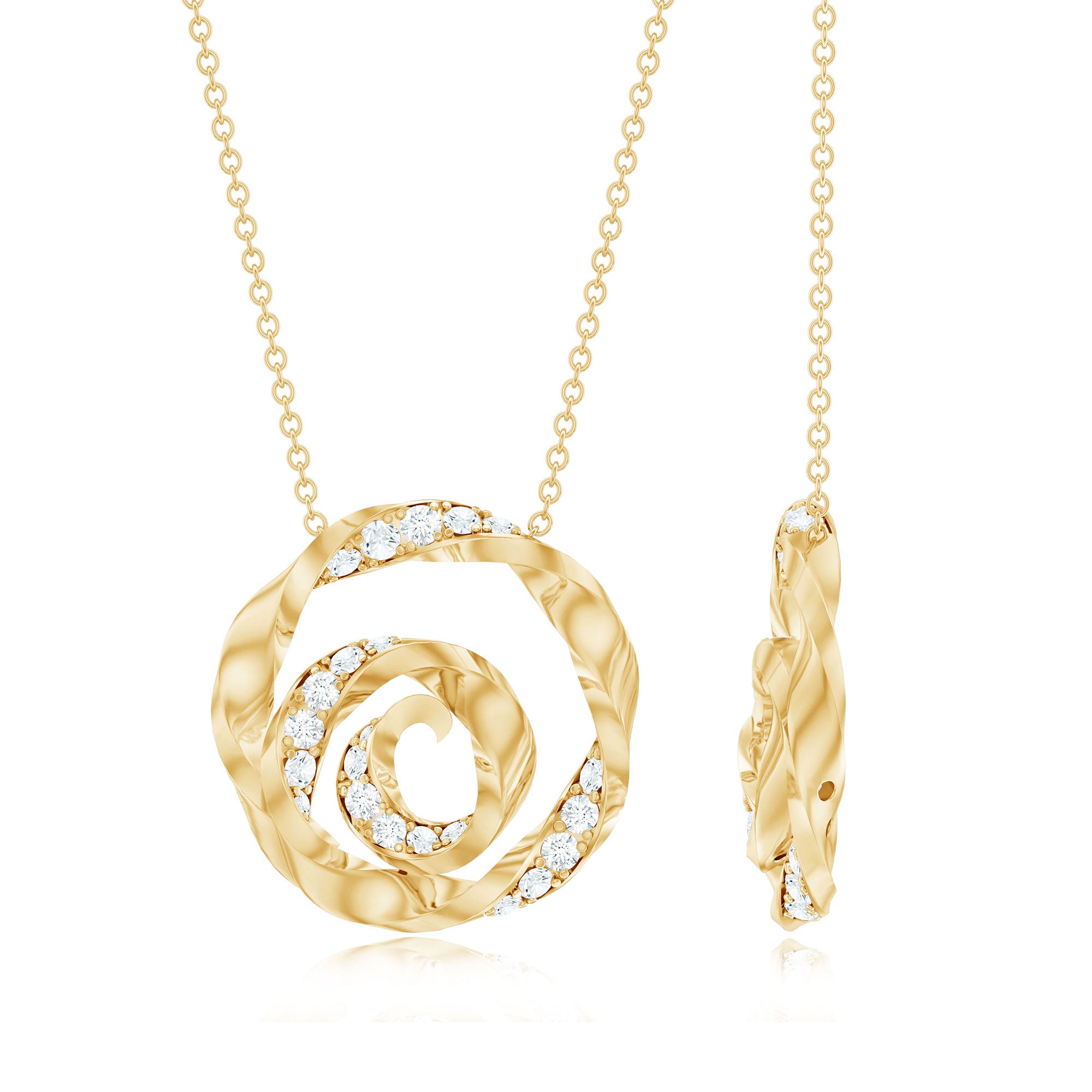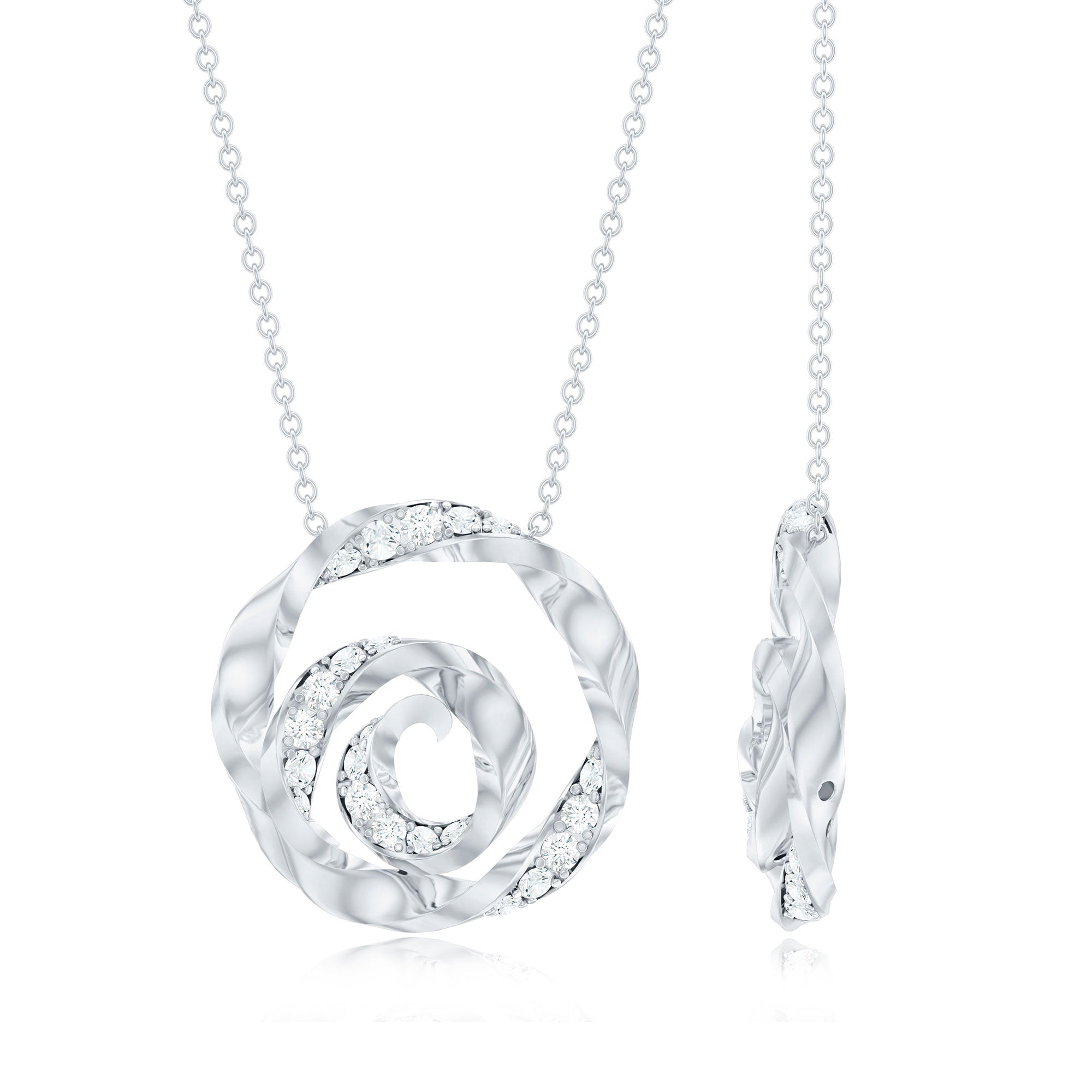 Add a touch of timeless elegance to your everyday style with this simple yet stunning Lab made Diamond Swirl Necklace. This Spiral Pendant features round shaped diamonds of EF-VS Quality set in pave setting. This Diamond Necklace for Women will never go out of style and can be worn as a daily statement. Crafted with precision, this Unique Necklace offers unparalleled radiance, durability, and ethical brilliance. Whether worn alone for a subtle statement or layered for a trendy, stacked look, this Round Necklace is must-have for your jewelry collection. Presented in a premium box, its the perfect choice for a moment youll cherish forever.
