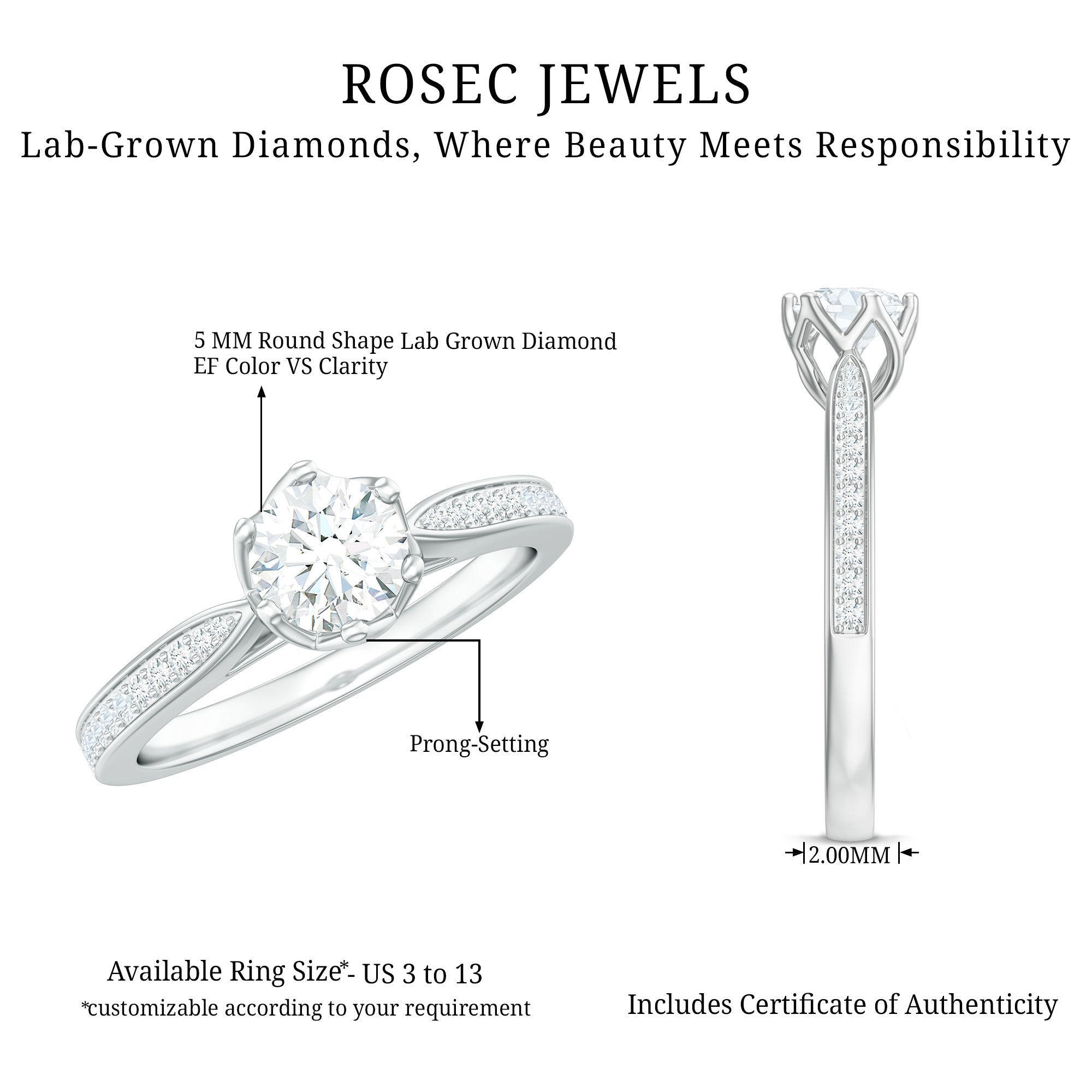Lab Grown Diamond Solitaire Engagement Ring with Side Stones