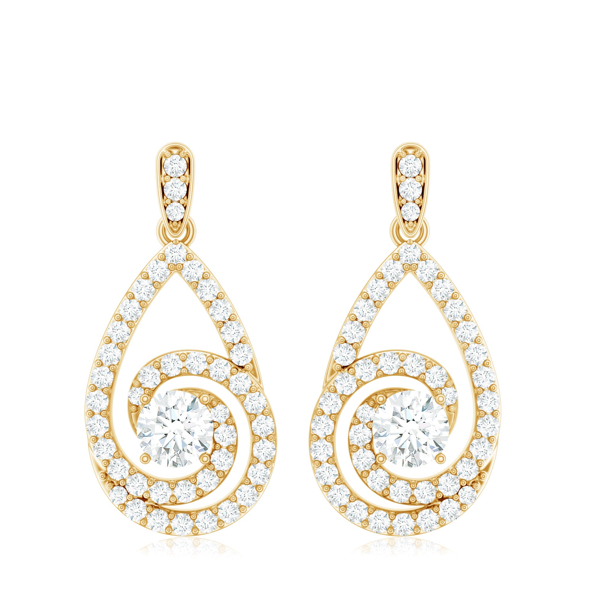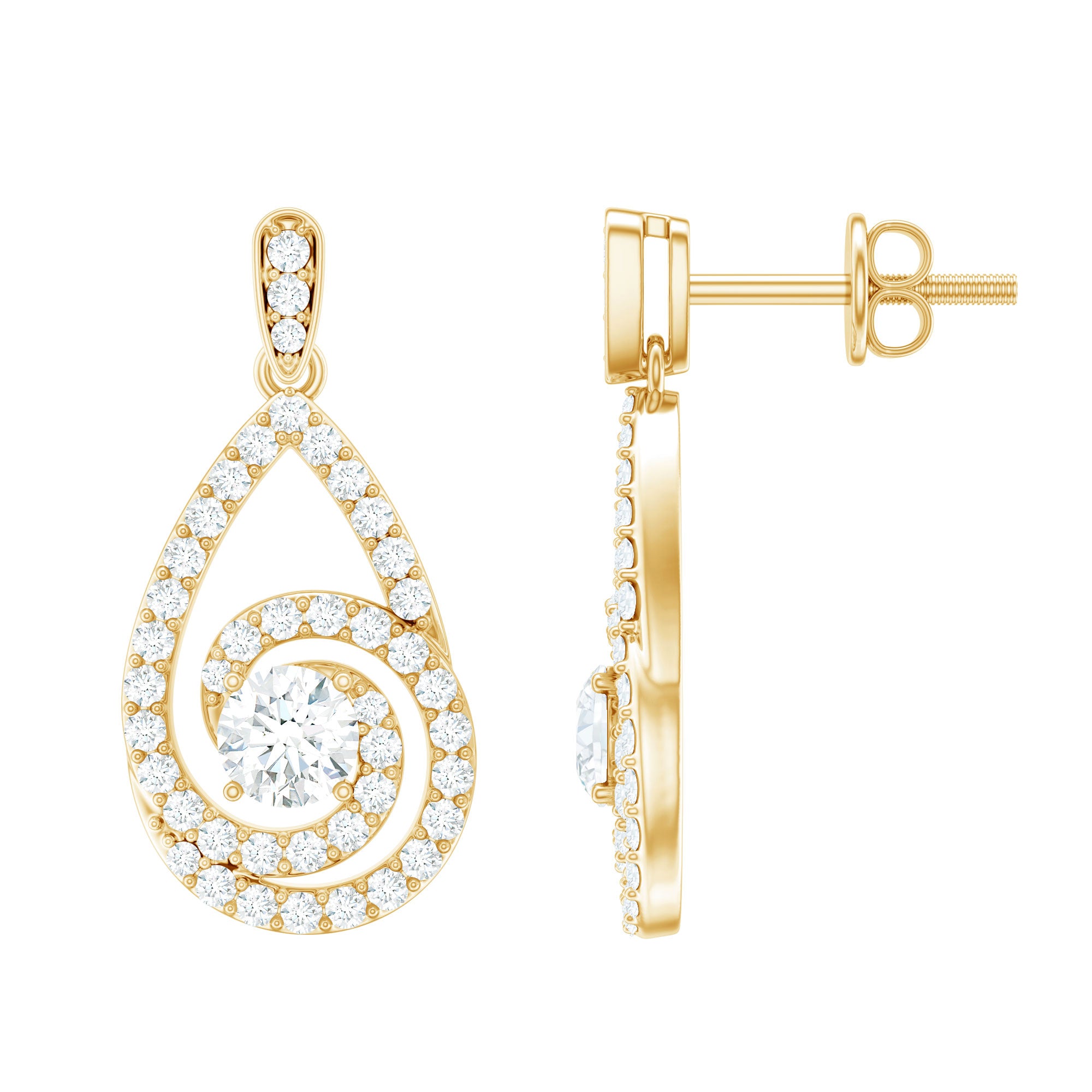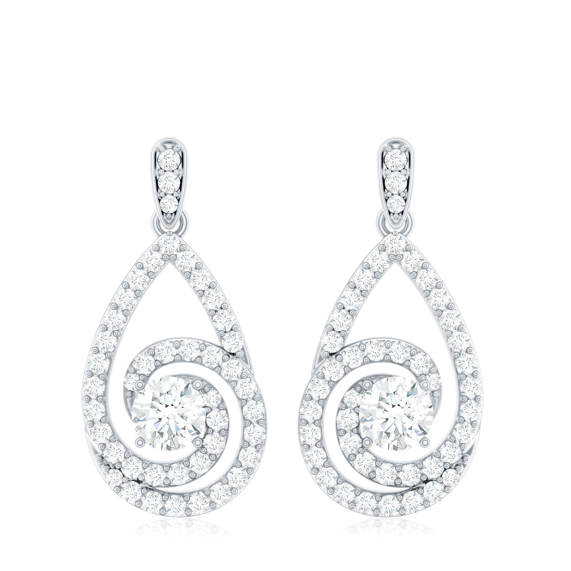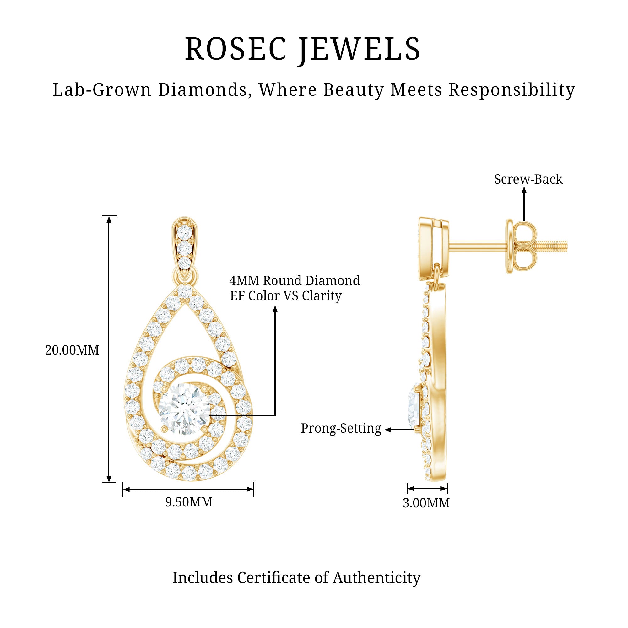 Dazzle up with our Minimal Diamond Drop Earrings, a testament to elegance in simplicity. These Teardrop Earrings are adorned with sparkling 4 mm round shaped Diamond set in the center in a prong setting and surrounded by a swirl-like teardrop design decorated with dainty Ef-Vs quality diamonds, reflecting timeless sophistication. With a screw back closure, they stay in place, allowing you to go out with confidence. These Lab Grown Diamond Earrings are an affordable option for those born in April or those whose zodiac sign is Aries, these April Birthstone Earrings hold even deeper meaning, representing clarity, love, and strength. Perfect for your loved one, these Bridal Earrings are a simple yet meaningful addition to any jewelry collection.