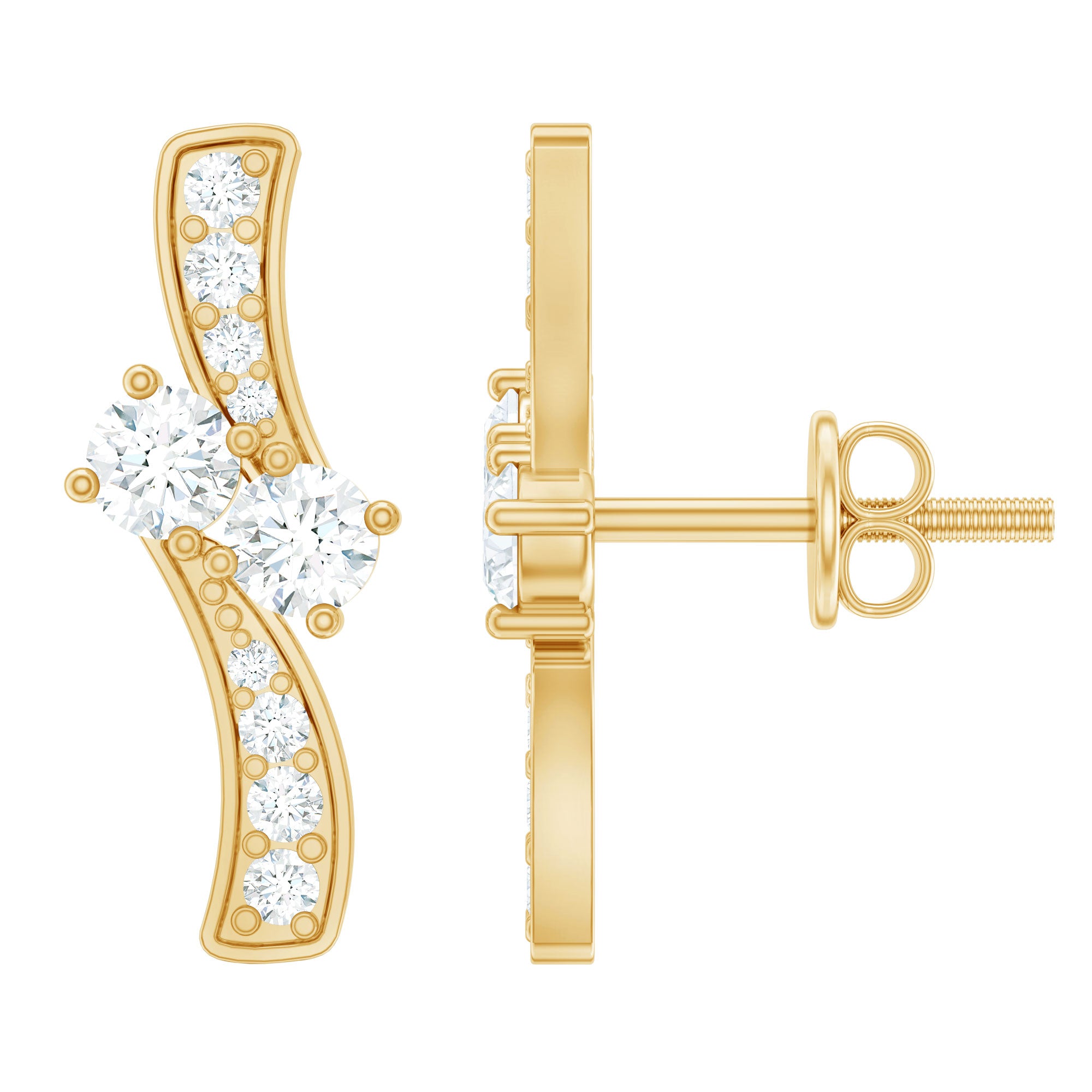 Adorn yourself with understated elegance by wearing these lab grown Diamond Stud Earrings featuring Round Shape Diamonds (Ef-Vs quality) set in a secure prong setting over a bypass design. The Screw Back Closure ensures a secure fit, offering both comfort and style. For those who are in search of April Birthstone Earrings, they offer an affordable yet luxurious option without compromising on quality or style and all of our jewelry comes in the appropriate packaging ensuring they are ready for gifting upon arrival. Crafted with perfection, these Man Made Diamond Earrings showcase Rosec Jewels commitment to quality and sustainability.