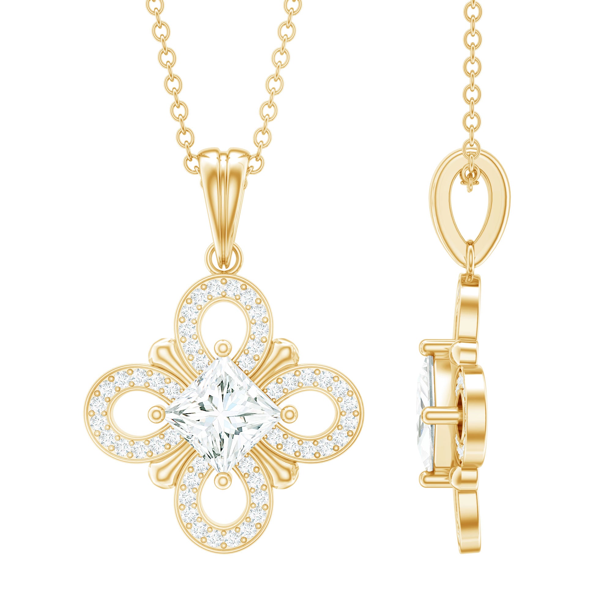 Highlight your neckline with this exquisite Floral Pendant Necklace featuring a diagonally placed 5 MM Princess Cut Diamond, surrounded by delicate round shaped gemstones. This EF-VS quality Diamond Pendant Necklace is a testament to both luxury and responsible choices. This lab grown Diamond Flower Necklace makes an ideal anniversary or birthday gift, perfect for celebrating the love and connection you share, and comes with a Certificate of Authenticity, ensuring exceptional craftsmanship and quality.