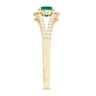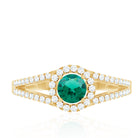 This Lab Grown Emerald Engagement Ring is a masterpiece of elegance, designed to make your proposal moment unforgettable. Captivating hearts, this Split Shank Engagement Ring is adorned with a 6 mm Round Shape Lab Created Emerald of Aaaa Quality set in Prong Setting, its rich green hue full of life and meaning, encircled by a shimmering Halo of Diamond gemstones that enhance its glow and brilliance. The Split Shank band not only adds a modern, stylish touch but also carries symbolism, two paths coming together as one, reflecting the union of two souls in love. The combination of the lush green of Lab Emerald with the sparkling white brilliance of Natural Diamond gemstones creates a striking contrast of color and sparkle. With every glance, this Emerald Diamond Engagement Ring captures the moment, turning heads with its beauty and radiance. A meaningful and thoughtful choice, this Emerald Halo Engagement Ring offers the same timeless allure and elegance as a natural emerald engagement ring but with the ethical and affordable brilliance of a Lab Grown Emerald. Perfectly crafted, this Classic Engagement Ring is a celebration of love, commitment, and the beginning of forever.