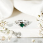 Lab Grown Emerald Flower Engagement Ring with Certificate