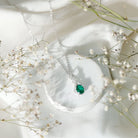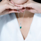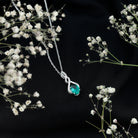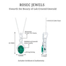 Immerse yourself in the elegance of our Lab Grown Emerald Pendant Necklace, where every detail exudes sophistication and charm. Our Emerald and Moissanite Necklace is more than just an accessory; it is a bold statement, a symbol, and a radiant chapter in your personal love story. The design showcases a 6X8 MM oval cut lab grown emerald gently held in a prong setting at the base of an infinity symbol, embellished with the sparkling touch of round Moissanite stones. Celebrate your inner brilliance and adorn yourself with the passion and luster of AAAA quality emerald and D-VS1 quality moissanite, allowing this Infinity Drop Pendant to narrate your romance through gemstones. Rosec Jewels is dedicated to creating exquisite jewelry pieces using Certified Lab Cultured Gemstones.