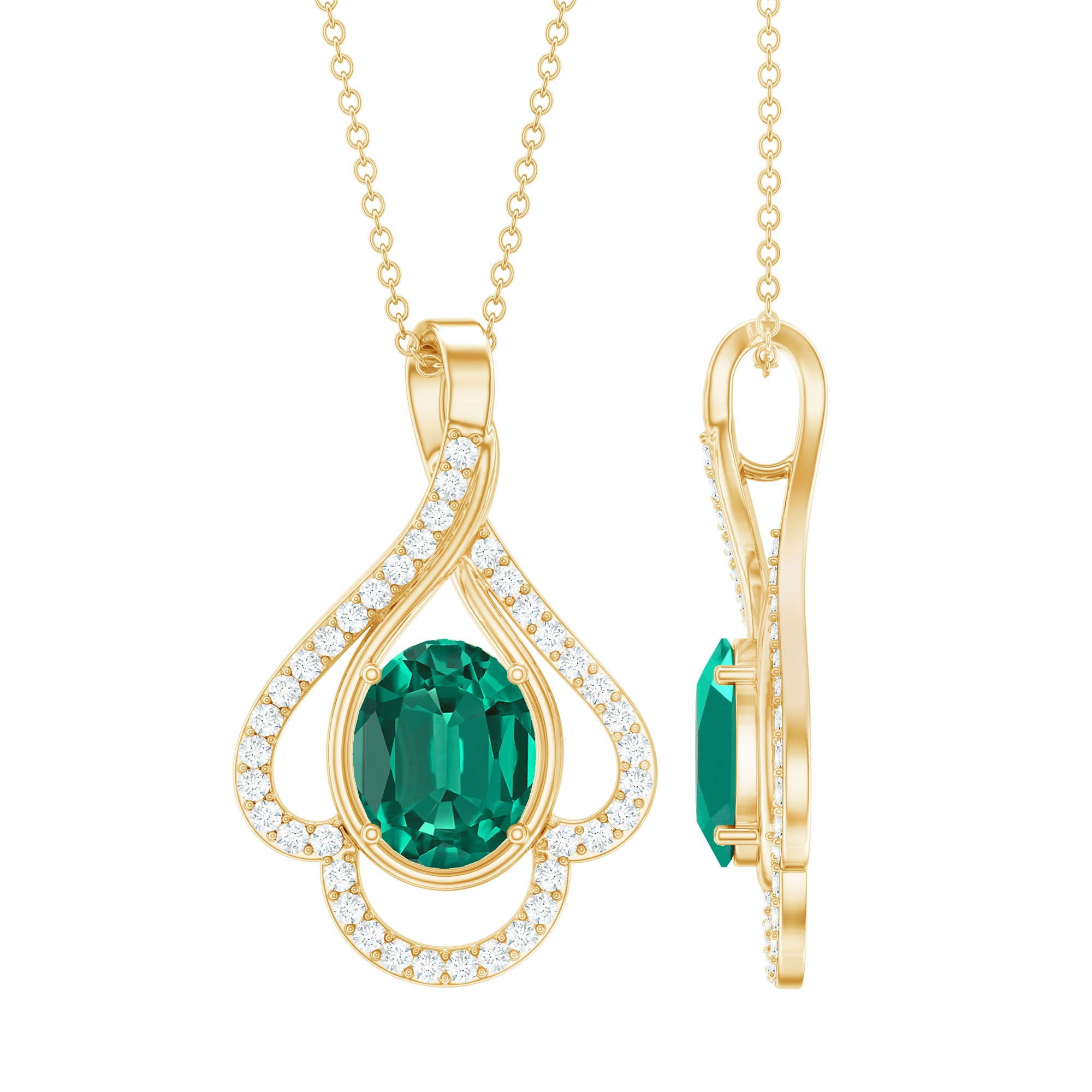 Lab Grown Emerald Oval Pendant Necklace with Diamonds