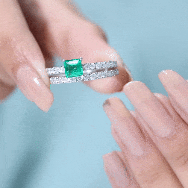Lab Grown Emerald Princess Cut Engagement Ring with Wedding Band