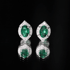 These Lab Grown Emerald Earrings are exceptionally beautiful, exuding a vintage charm and a captivating appearance. Crafted from 14k white gold plated silver, these Halo Earrings feature a 5X7 MM oval lab-created emerald set in prongs, encircled by a halo of round brilliant cut Moissanite on an Petal shaped frame. The Lab Grown Emerald Stud Earrings are distinguished by their unique and old-world inspired design. They add a touch of elegance and a burst of color to any ensemble. With these eye-catching Screw Back Earrings, youll certainly turn heads and make hearts flutter. Express your individuality and make a classic fashion statement with these Art Deco Studs, which are bound to draw attention with their vibrant allure or be admired for their distinctive beauty. The striking simplicity of these timeless Statement Earrings is free of unnecessary embellishments, making them a sophisticated choice for any woman who desires to carry herself with poise.