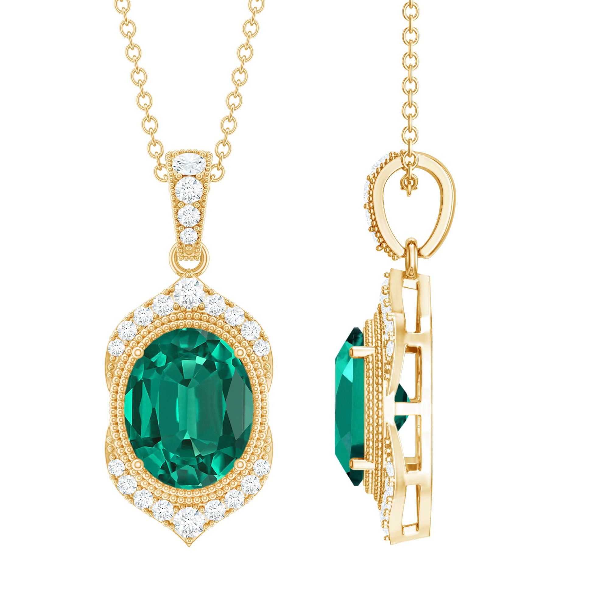 Lab Grown Emerald Vintage Inspired Pendant Necklace with Diamond