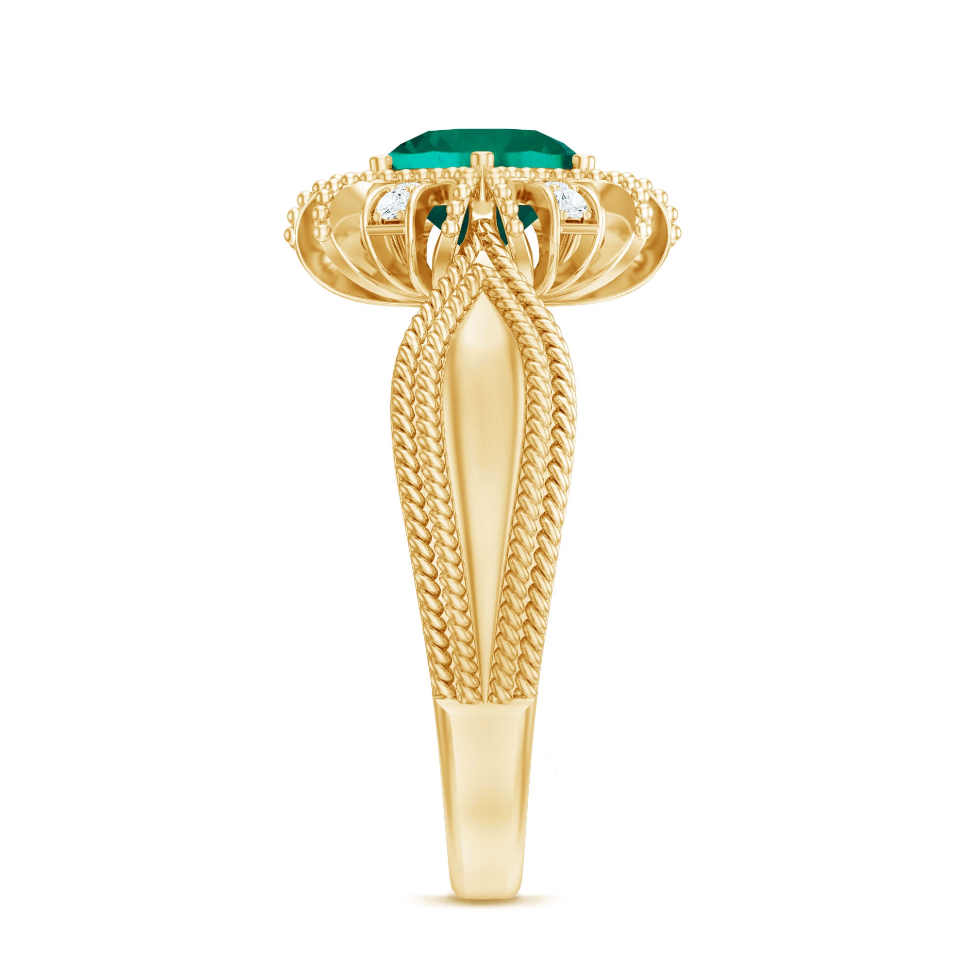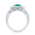 Lab Grown Emerald Vintage Style Flower Engagement Ring With Diamond