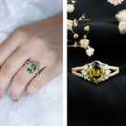Lab Grown Green Sapphire Oval Engagement Ring with Moissanite