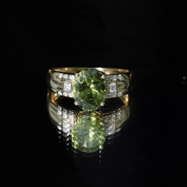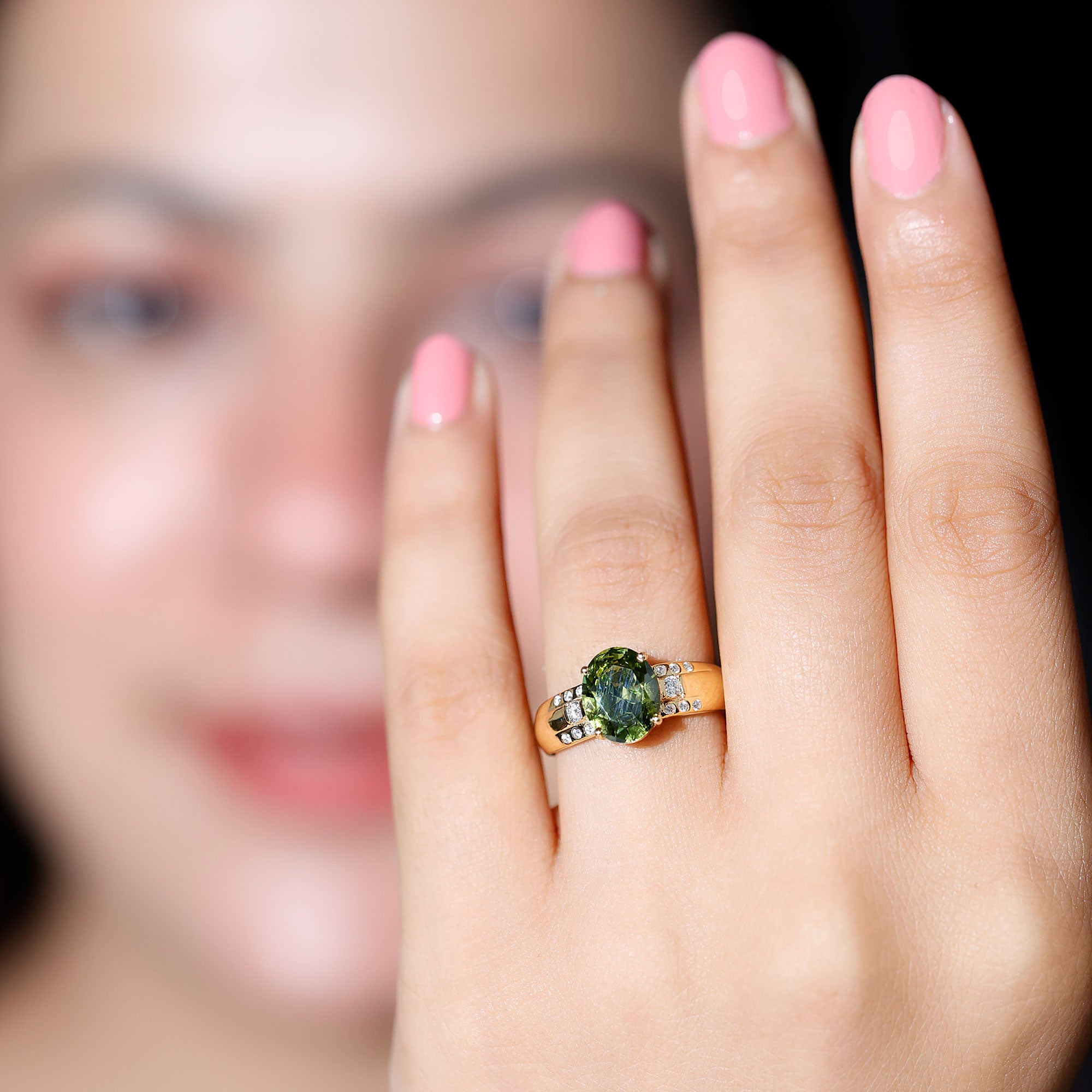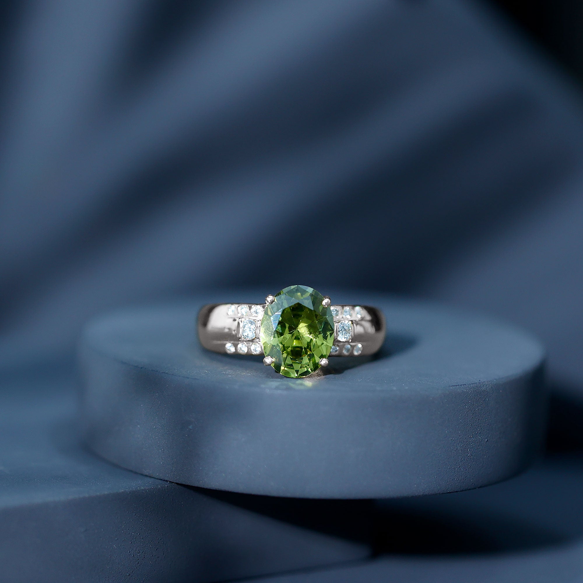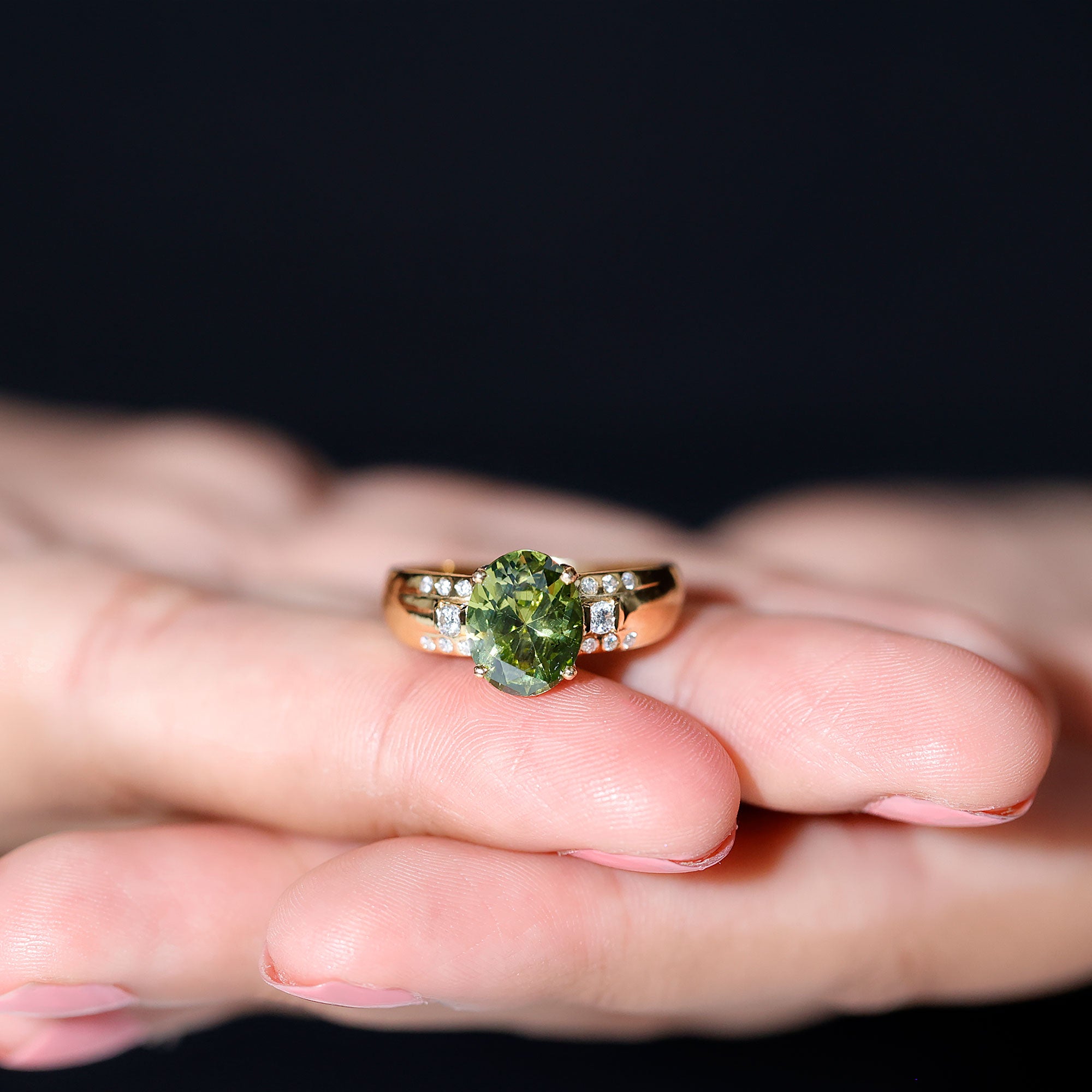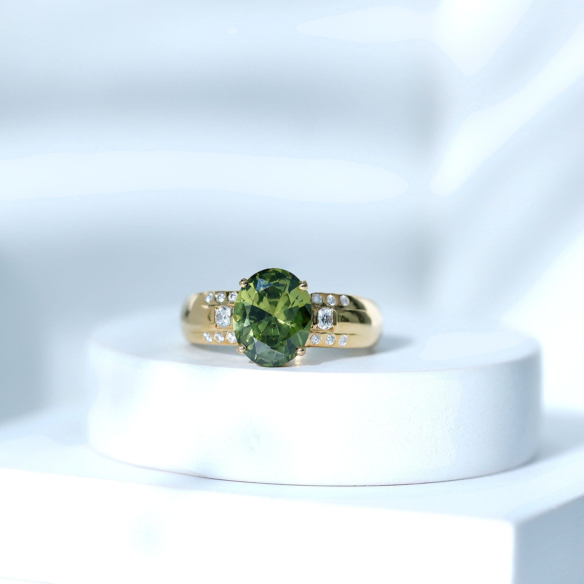 Lab Grown Green Sapphire Solitaire Oval Engagement Ring with Moissanite