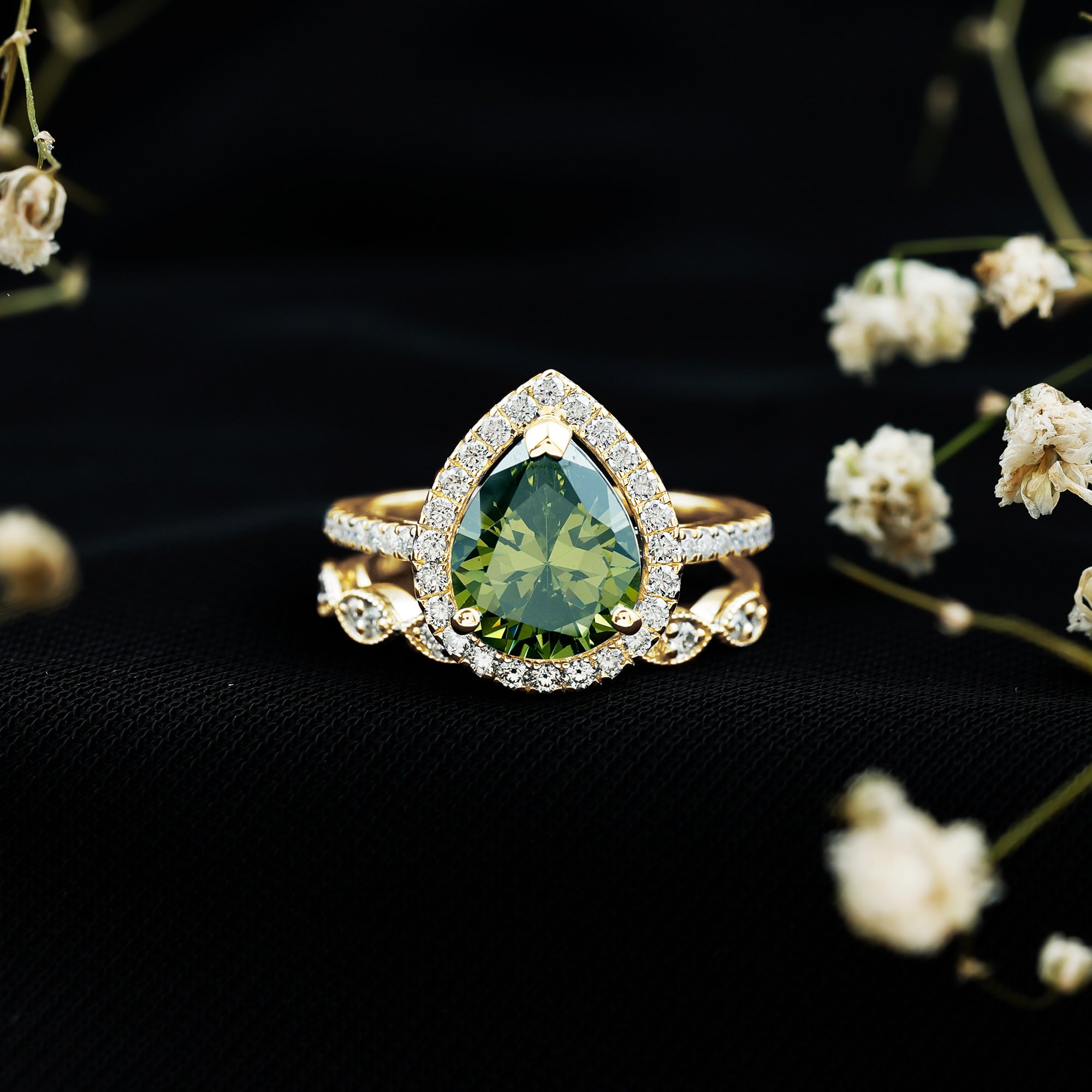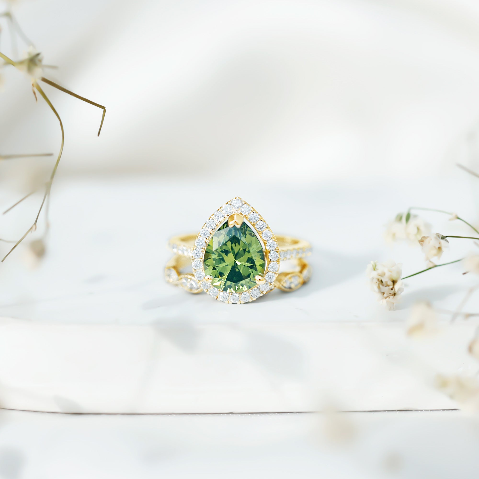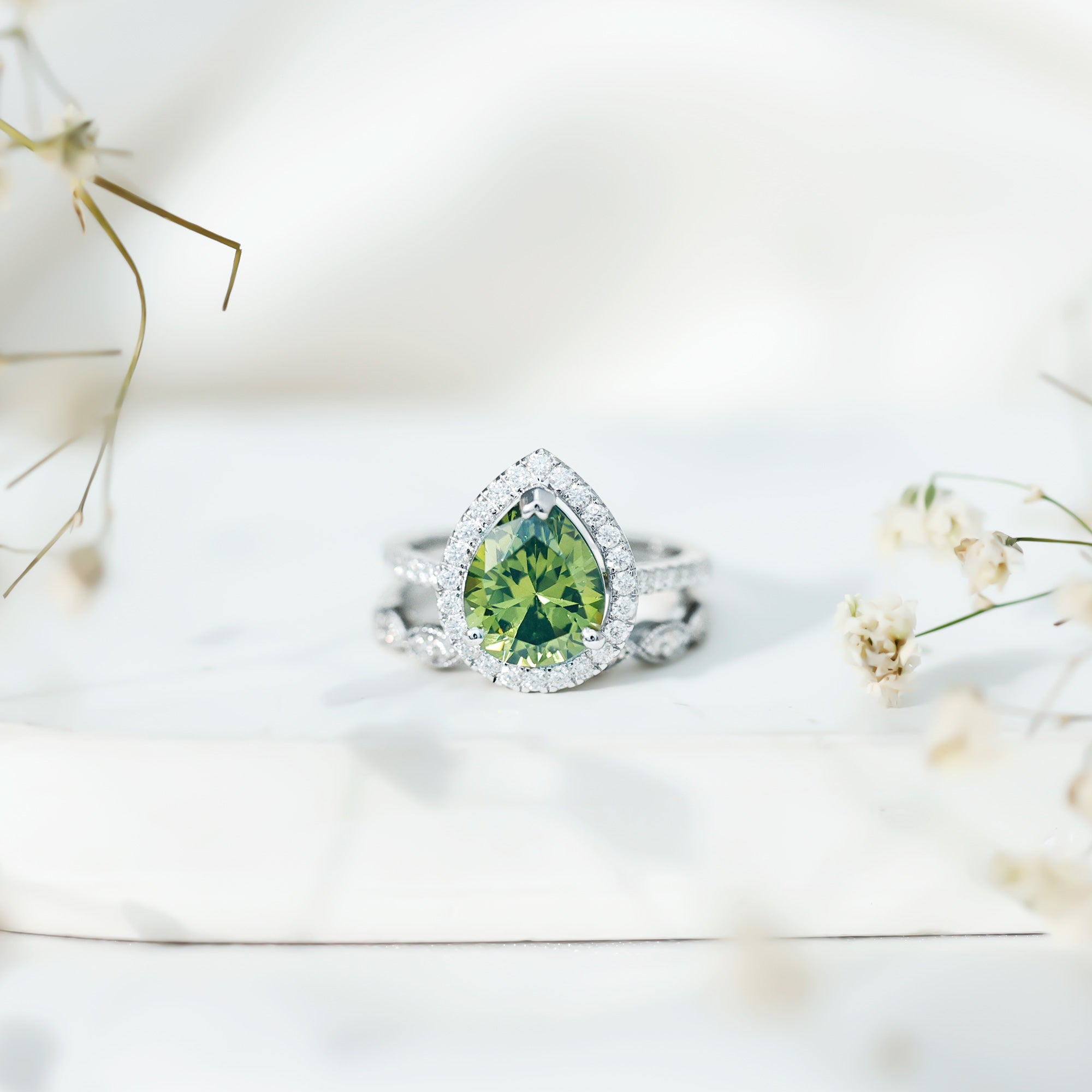 Lab Grown Green Sapphire Teardrop Engagement Ring Set