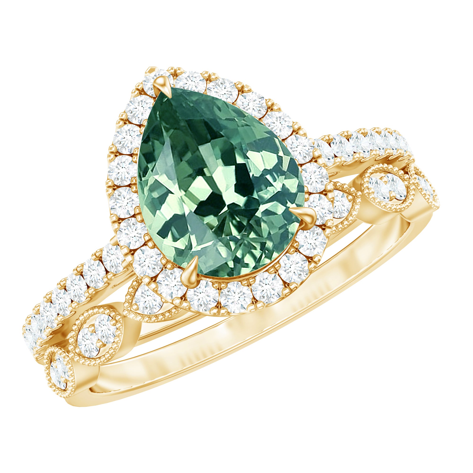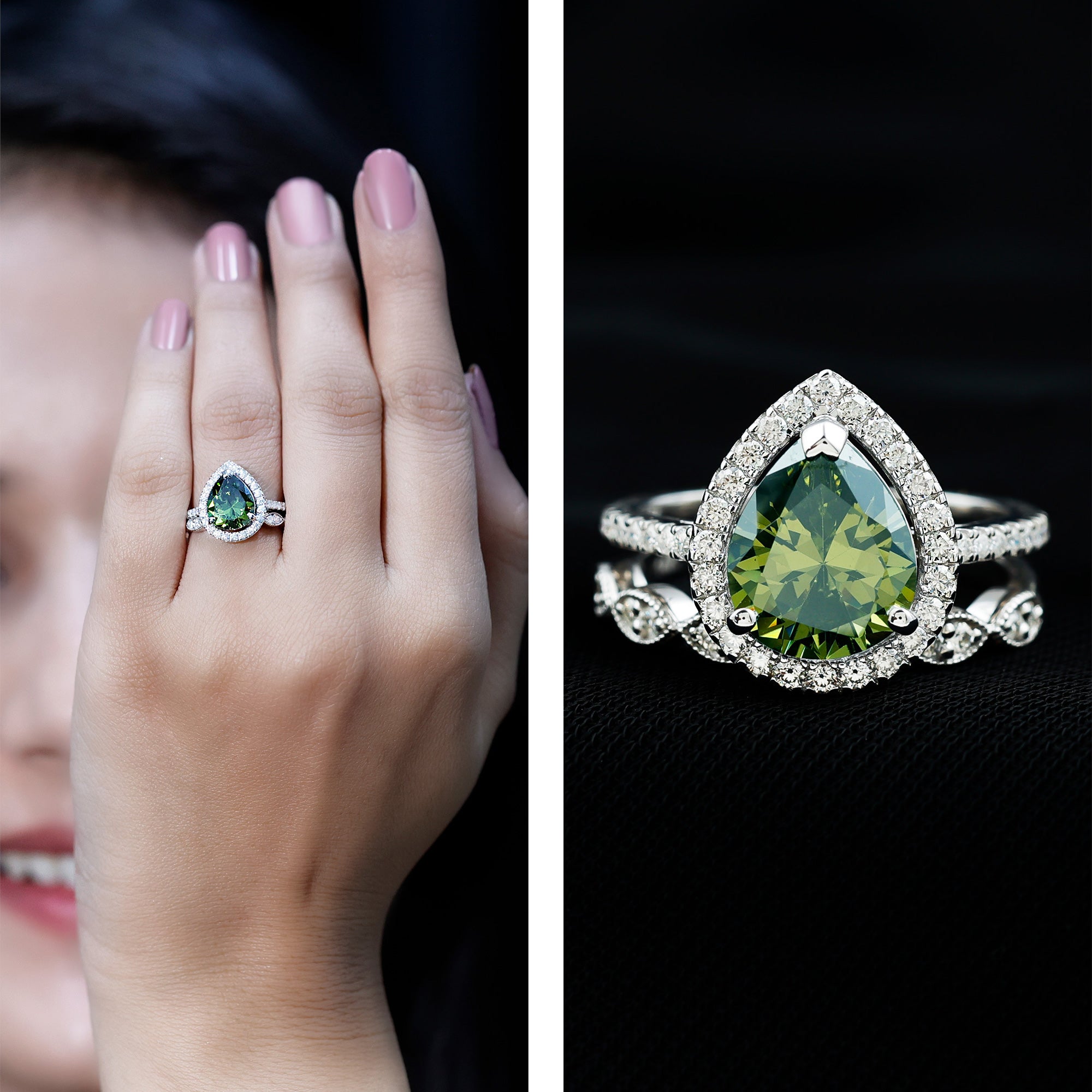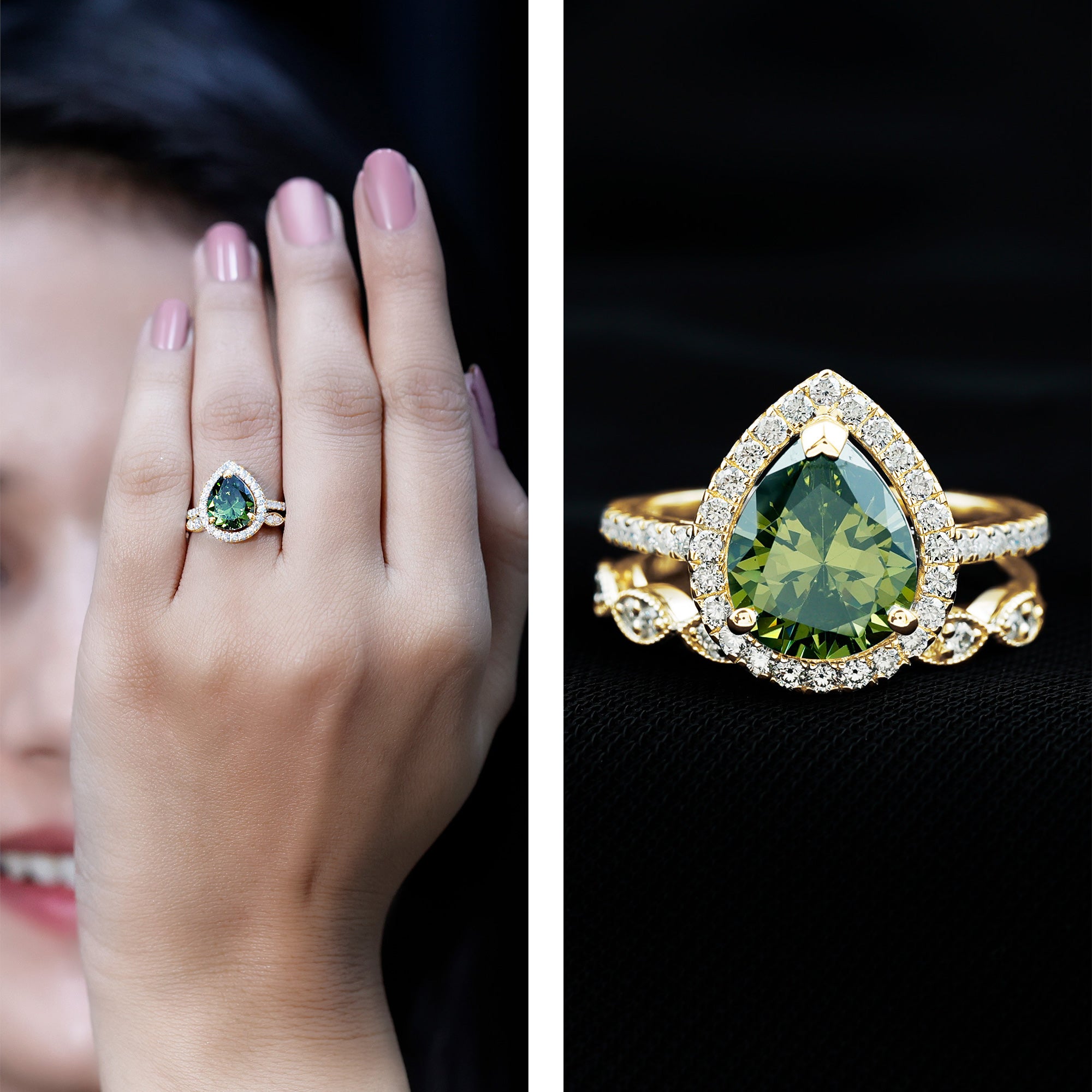 Lab Grown Green Sapphire Teardrop Engagement Ring Set