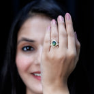 A beautiful symbol of forever, this Engagement Ring Set is embellished with Pear Shaped Lab Grown Green Sapphire secured by Claw Setting and dainty Round Moissanite adding a touch of sparkle. This Teardrop Ring Set comes in an elegantly packaged in our Signature Jewelry Box. Perfect gift for yourself, your mom, your wife or daughter, bridesmaids, or an Anniversary Gift, Birthday Gift, Valentines Day Gift, or any Special Occasion!