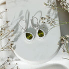 These Lab Grown Green Sapphire Earrings have a timeless appeal with a classic choice that makes them perfect to wear for the special occasion. Exploring beauty and enduring charm, these Earrings are adorned with 7X10 MM Pear Shape Lab Grown Sapphire in Prong Setting with the Moissanite Halo. Crafted from White Gold Plated Silver, these Hoop Drop Earrings deliver the most sparkle and brilliance. Unfolding the captivating story, these Earrings redefine elegance, revealing the intricate details that make each one unique. Add a touch of breathtaking attraction with these Teardrop Earrings, an appreciative and luxurious choice, enhancing the overall beauty of the design. Dazzling with brilliance, these Pear Shape Earrings offer exceptional dazzle, making them a must-have accessory for the one close to your heart. Balancing classic elegance with modern touches, these Earrings with Pear Shape gemstone are associated with tears of joy or the romantic concept of enduring love.