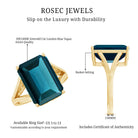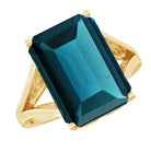Capture attention and win hearts with this stunning London Blue Topaz Engagement Ring, a true showstopper. Made from Yellow Gold Plated Silver, this Solitaire Engagement Ring features a 10X14 MM Emerald Cut Lab Grown London Blue Topaz set in Basket Setting, complete with a Split Shank design. It beautifully directs focus to the center stone, amplifying the rings overall shine. With its classic design that showcases antique elegance, it perfectly complements modern aesthetics. This Vintage Style Engagement Ring introduces a splash of color and sophistication that distinguishes itself from traditional styles. It is a lovely way to honor your love story and begin a shared adventure. This Split Shank Ring serves as a cherished reminder of your love story, symbolizing extraordinary brilliance and unique rarity. Its distinctive and enchanting beauty carries a contemporary flair and mesmerizing hue, adding sparkle for the woman who wants to feel strong, fierce, and beautiful.