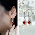 Lab Grown Orange Sapphire Drop Earrings with Moissanite
