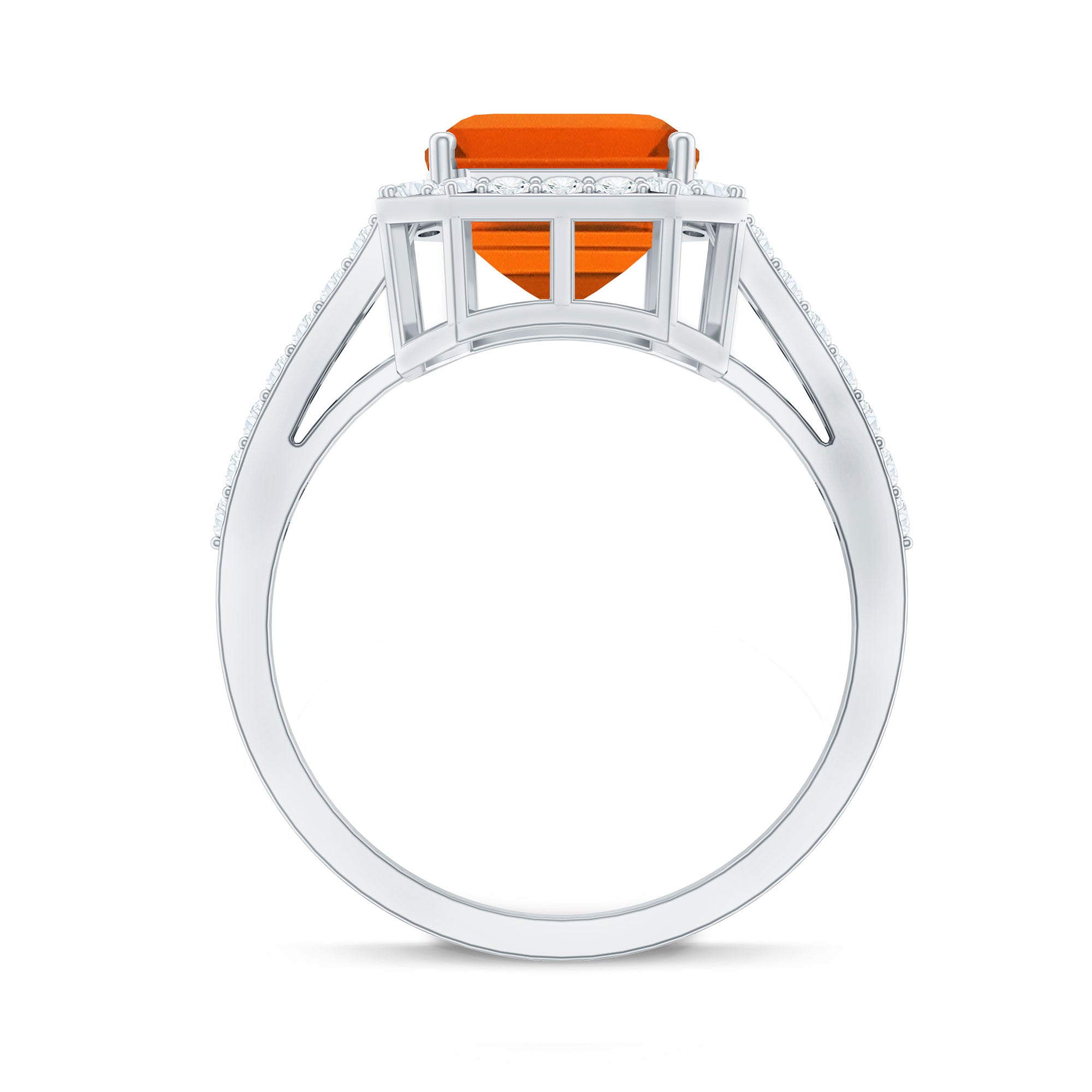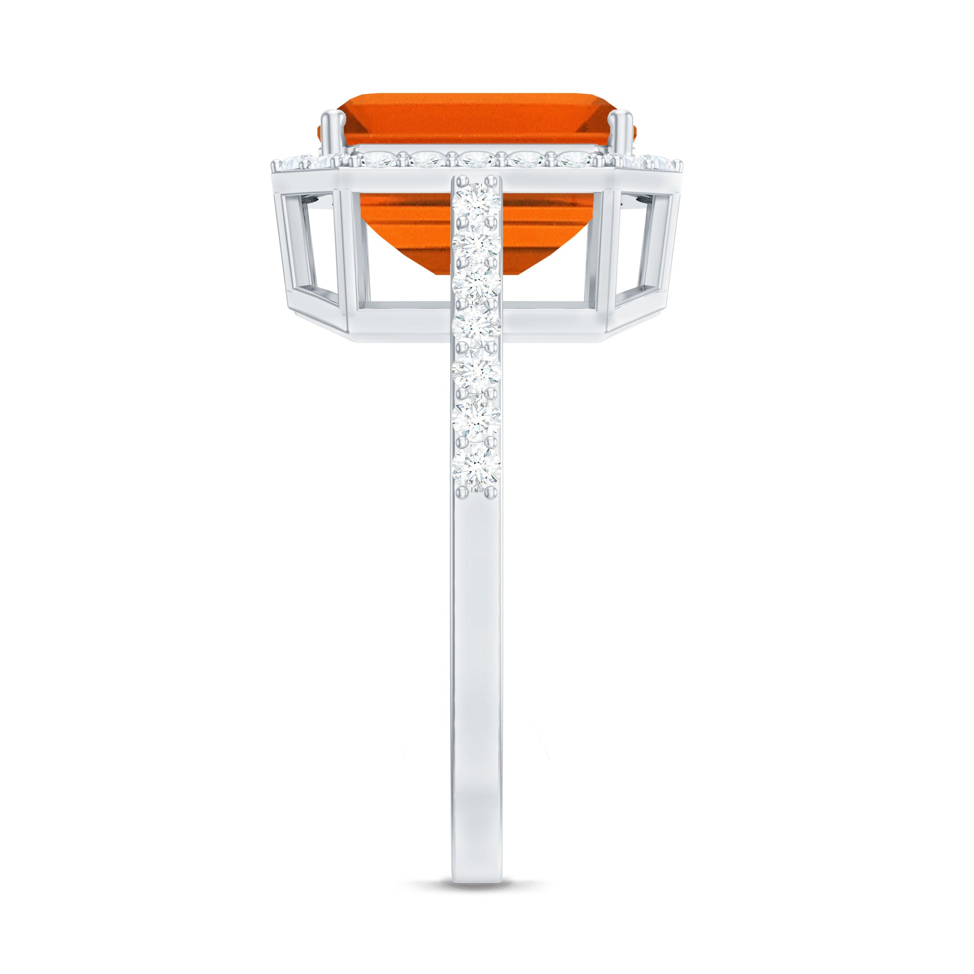 Lab Grown Orange Sapphire Emerald Cut Engagement Ring with Diamond