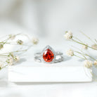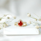 Lab Grown Orange Sapphire Teardrop Engagement Ring Set