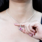 Lab Grown Pink Sapphire and Diamond Designer Necklace with Chain