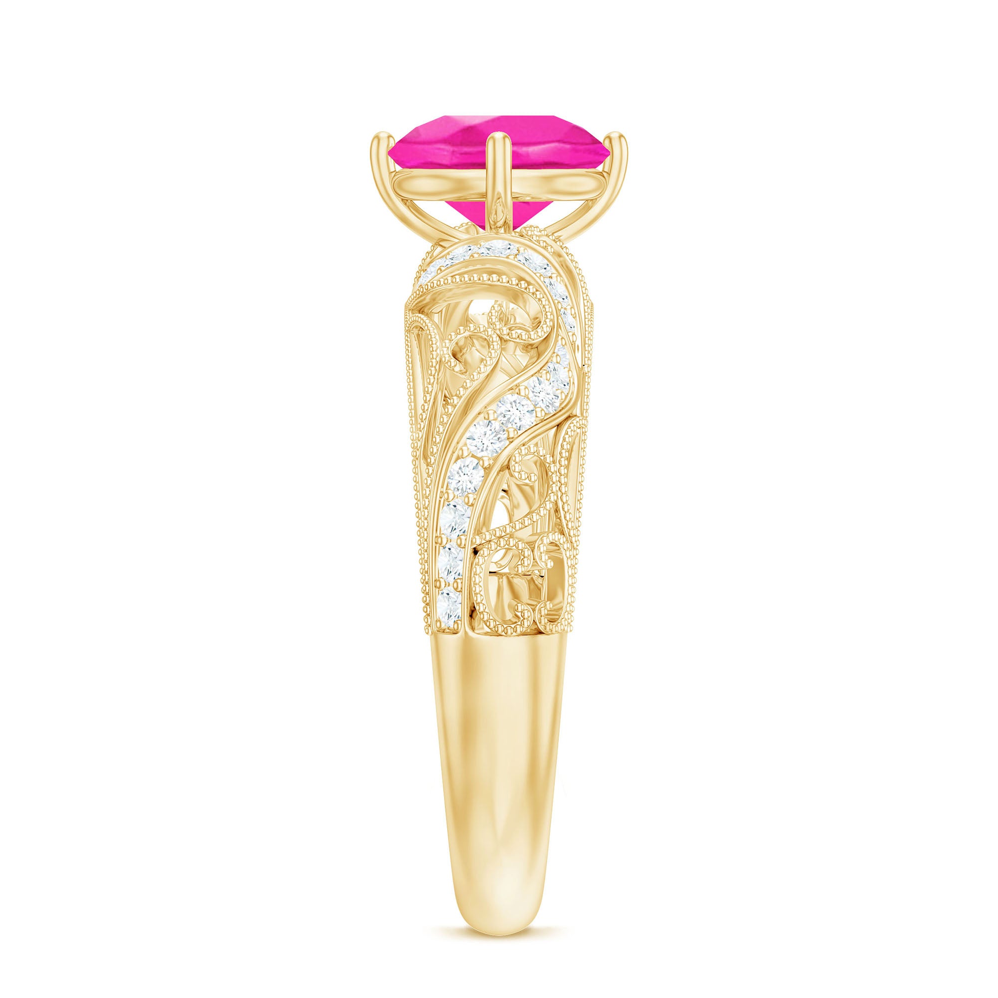 Lab Grown Pink Sapphire Antique Engagement Ring With Diamond