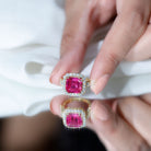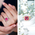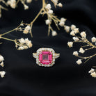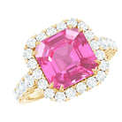 Crafted with elegance, this Halo Engagement Ring features a 9 MM Asscher Cut Lab Created Pink Sapphire secured by Claw Setting along with the Round Moissanites studded as Halo and on the shank. This ring beholds the intricate detailing that beautifies its look. This Sapphire Diamond Ring beholds feminine energy perfect for your lady to celebrate her on the special days. This Pink Sapphire Engagement Ring is crafted by Rosec Jewels for your special day. Express your love without saying much by presenting her with this captivating Created Pink Sapphire Ring as an anniversary or birthday gift to make her even happier.