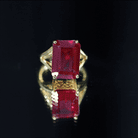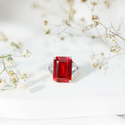 Lab Grown Ruby 10X14 MM Emerald Cut Engagement Ring with Split Shank