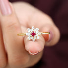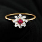 Lab Grown Ruby and Diamond Flower Cluster Engagement Ring