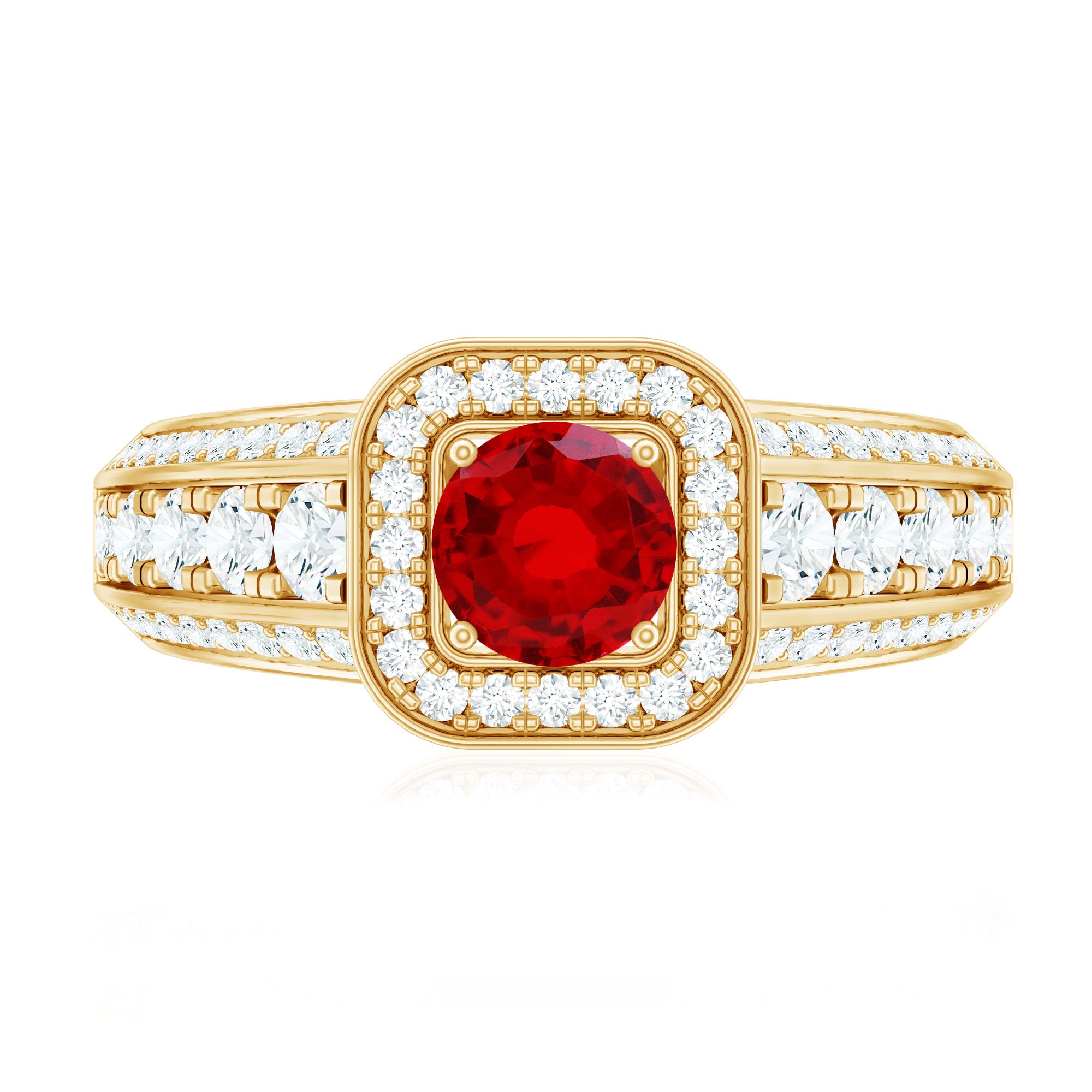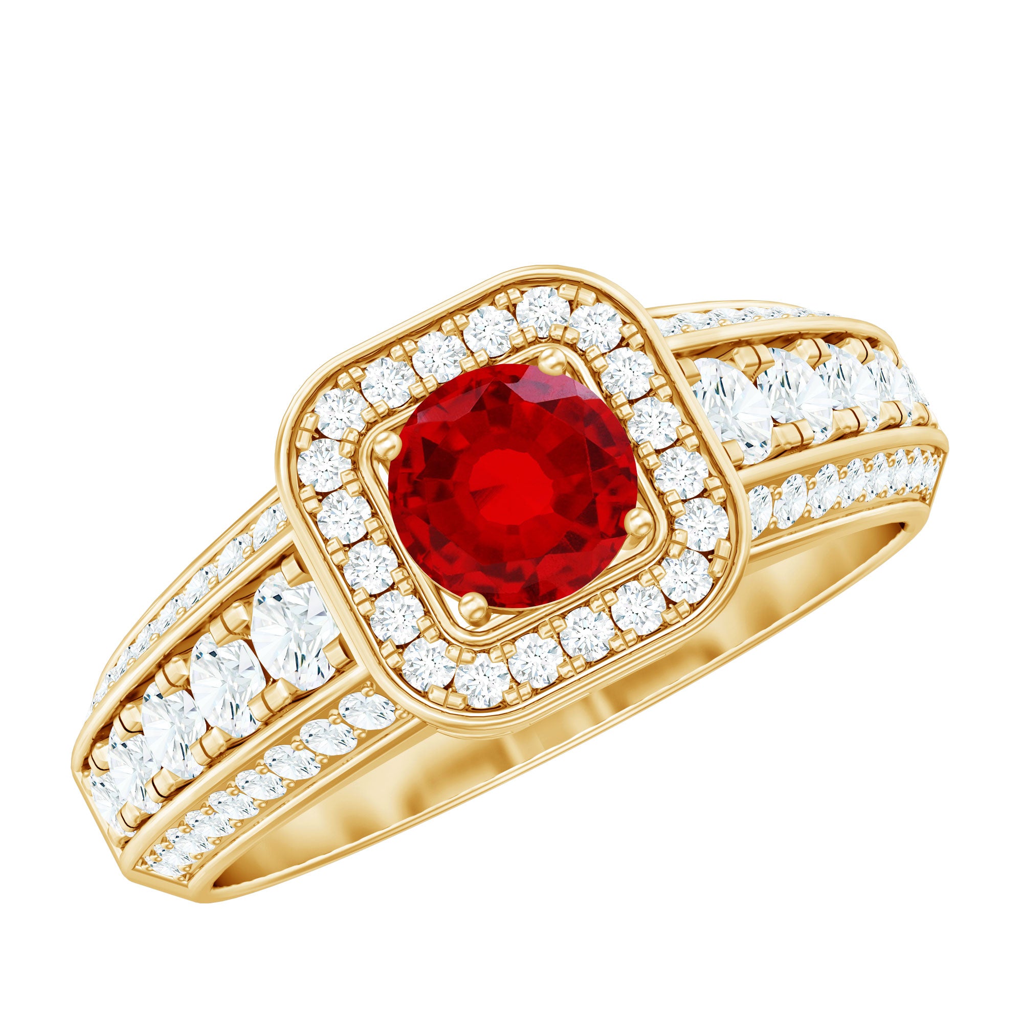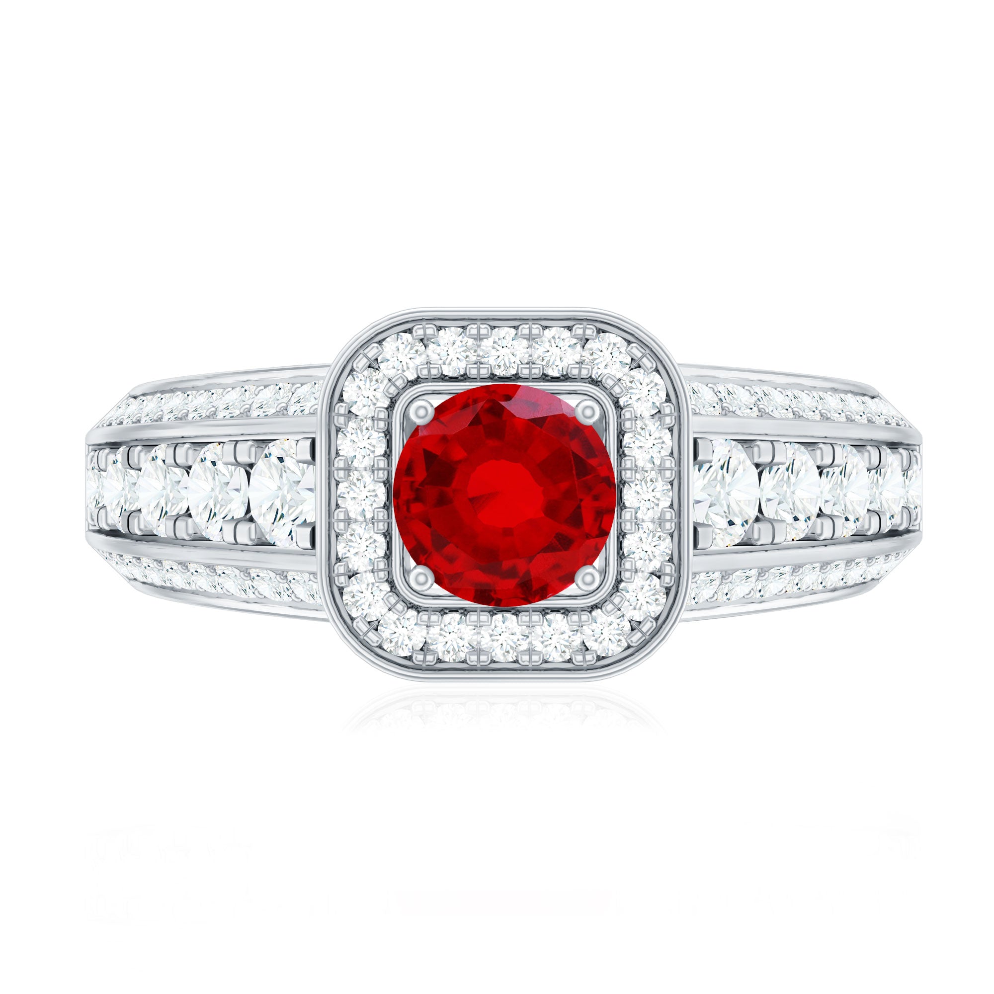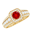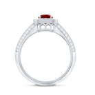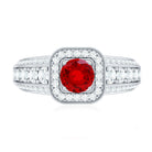 Lab Grown Ruby and Moissanite Halo Engagement Ring