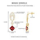 Flutter into elegance with these exquisite Minimal Lab Created Ruby Earrings! Each Earring showcases a captivating 6x6 mm Princess Cut Lab Created Ruby in a delicate Prong Setting, while the top of the ear piece is adorned with a mesmerizing infinity pattern embellished with Round Shape Lab Grown Diamonds, adding a touch of brilliance and sparkle. This classic earrings is adorned with Aaaa Quality Ruby and Ef-Vs Quality Diamond. Dont miss out on the opportunity to own this timeless piece of jewelry. Hurry up and make this holiday season extra special by surprising her with these elegant earrings. Capture the magic and sophistication with these Ruby Diamond Earrings. Order now!
