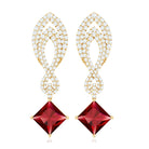 Lab Grown Ruby Drop Dangle Earrings with Diamond