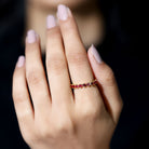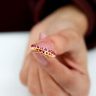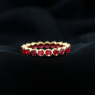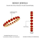 Express your love with this Full Eternity Ring, a timeless symbol of affection. The Classic design features Round Cut Created Ruby stones held securely in prong setting, creating an appealing and meaningful piece to present to the love of your life. Let this Created Ruby ring be a constant reminder of your love and devotion, a cherished token that will make her feel truly special and adored.