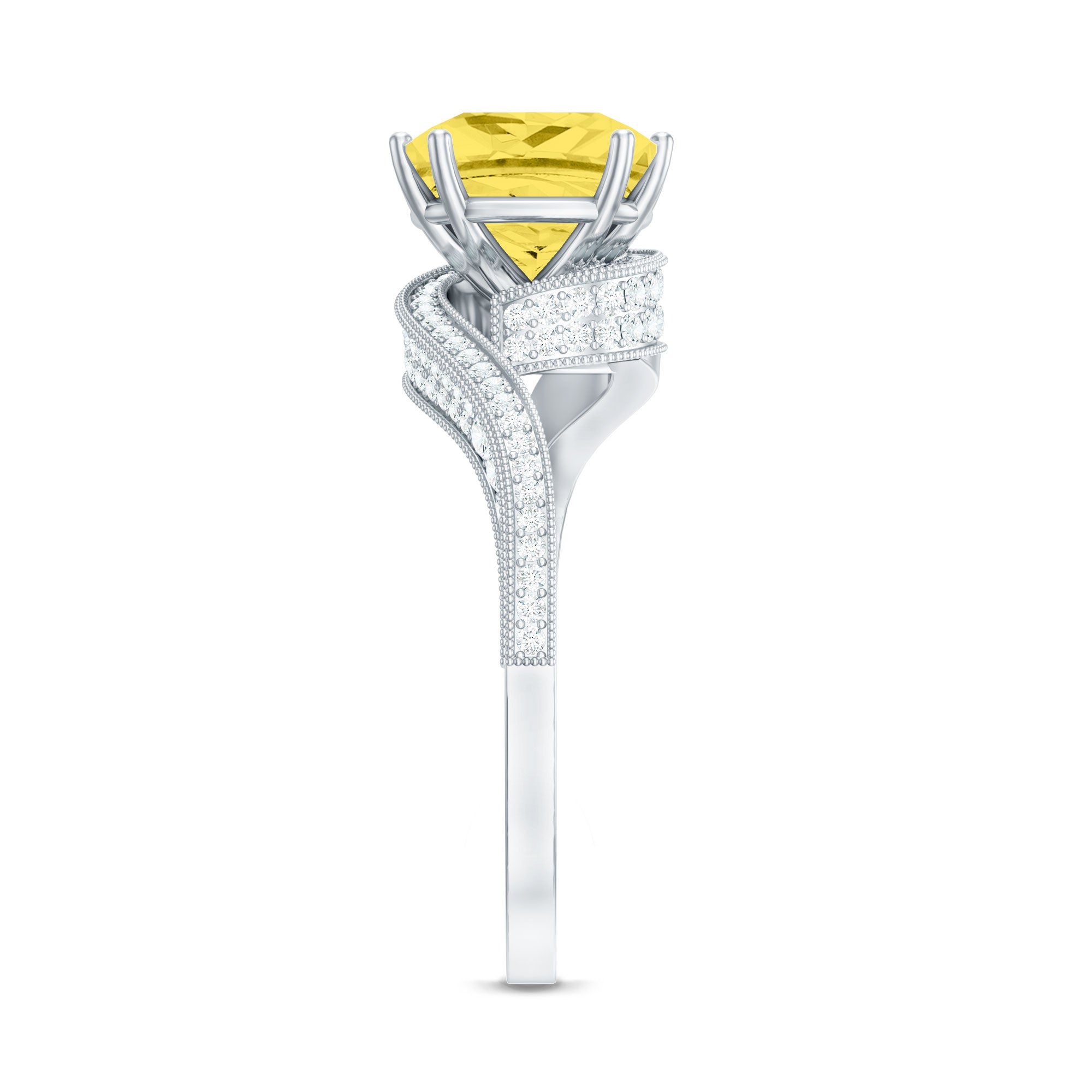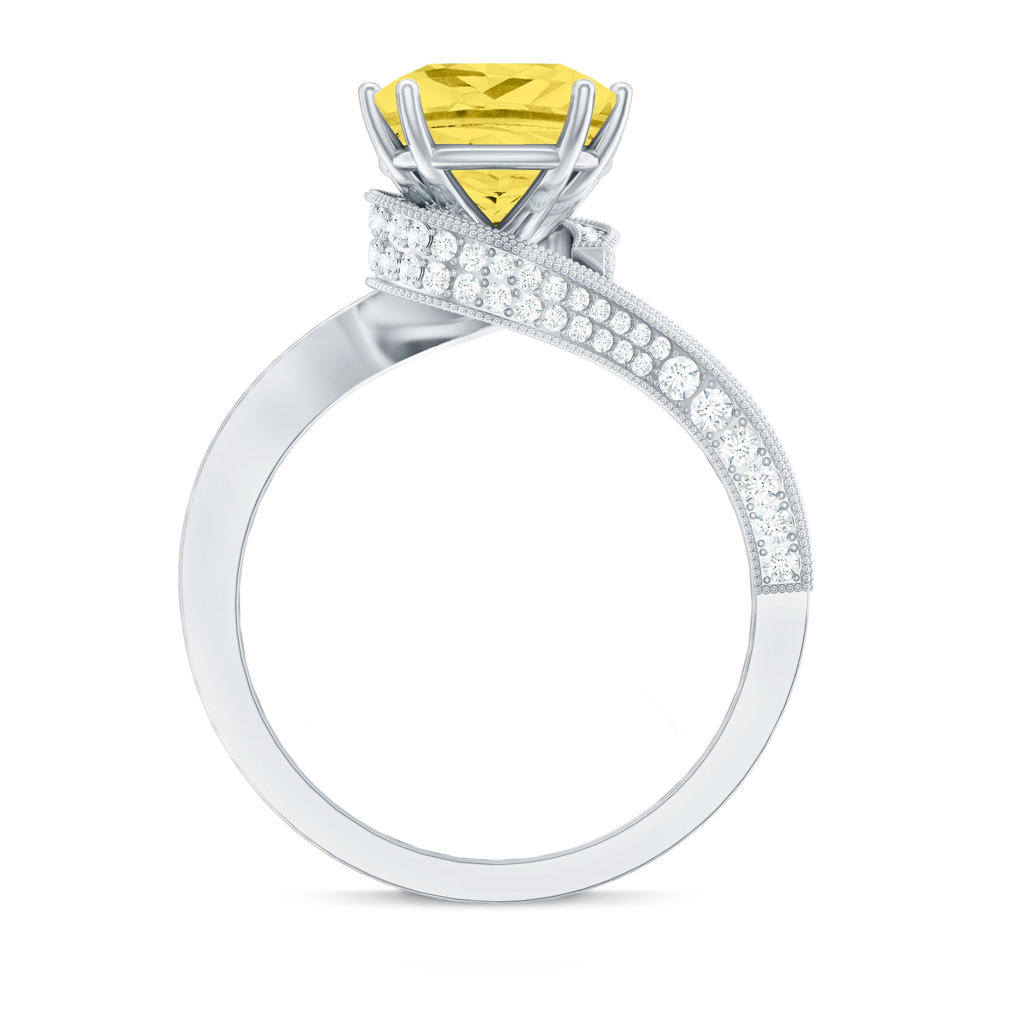 Lab Grown Yellow Sapphire Bypass Engagement Ring with Diamond