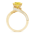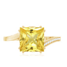 This simple yet exquisite Bypass Engagement Ring features a Princess Cut Lab Grown Yellow Sapphire secured by Double Prong Setting while Round Shape Diamond adds the right amount of sparkle. You can wear this Created Yellow Sapphire Ring with your everyday or party attire, to create unique and stunning looks.