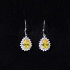The crisp brilliance of the eye-catching Lab Grown Yellow Sapphire Earrings, is a dazzling sparkle that adds a pop of color to your jewelry collection. These Earrings are crafted from White Gold Plated Silver, and are embellished with 7X10 MM Pear Shape Lab Grown Yellow Sapphire in Prong Setting with the Round brilliant cut Moissanite Halo. Trendy yet timeless, these Sapphire Drop Earrings have a unique color and sparkle that shines through. Having simplicity and a lively spirit, these Hoop Drop Earrings exhibit sparkle to match your modern style. Undeniably captivating, these Teardrop Earrings are a symbol of love, loyalty and timeless elegance. With a warm and breathtaking exuding vintage charm, it makes it a true showstopper. As a statement of love and style, these Bridal Earrings boast a realm where elegance meets enchantment. With the magic of twilight sky, these Wedding Earrings boast unique hues and an unspoken promise of AAAA Quality Lab Grown Yellow Sapphire and D-VS1 Quality Moissanite, which is a treasure of sophistication and a testament to ethical beauty.