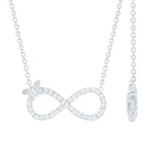 Lab Pave Set Diamond Sideways Infinity Butterfly Necklace