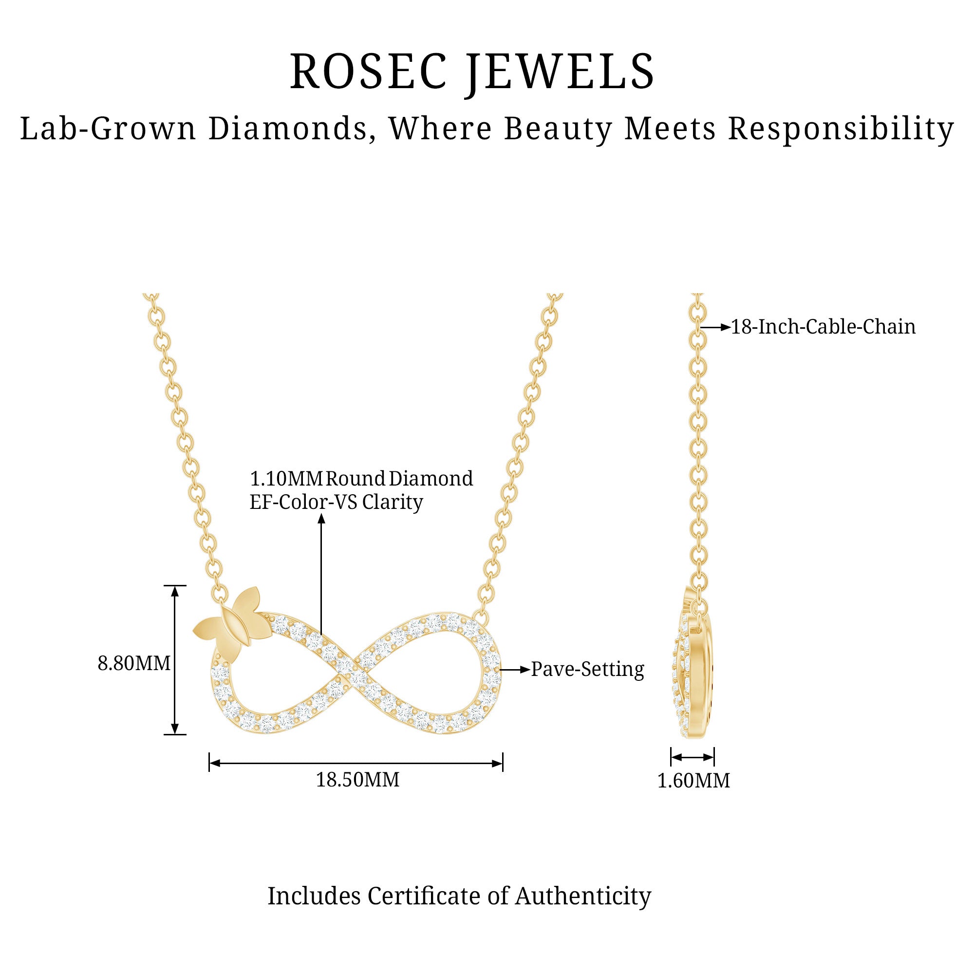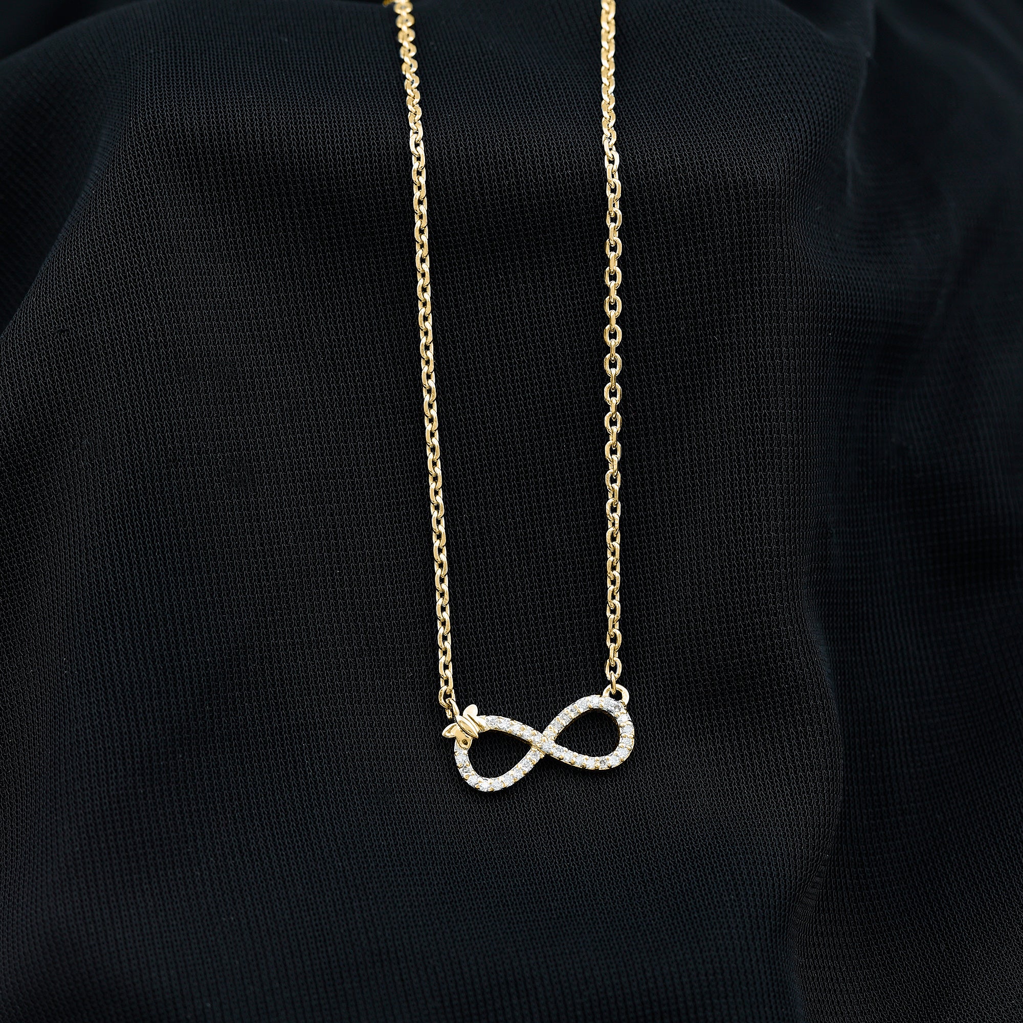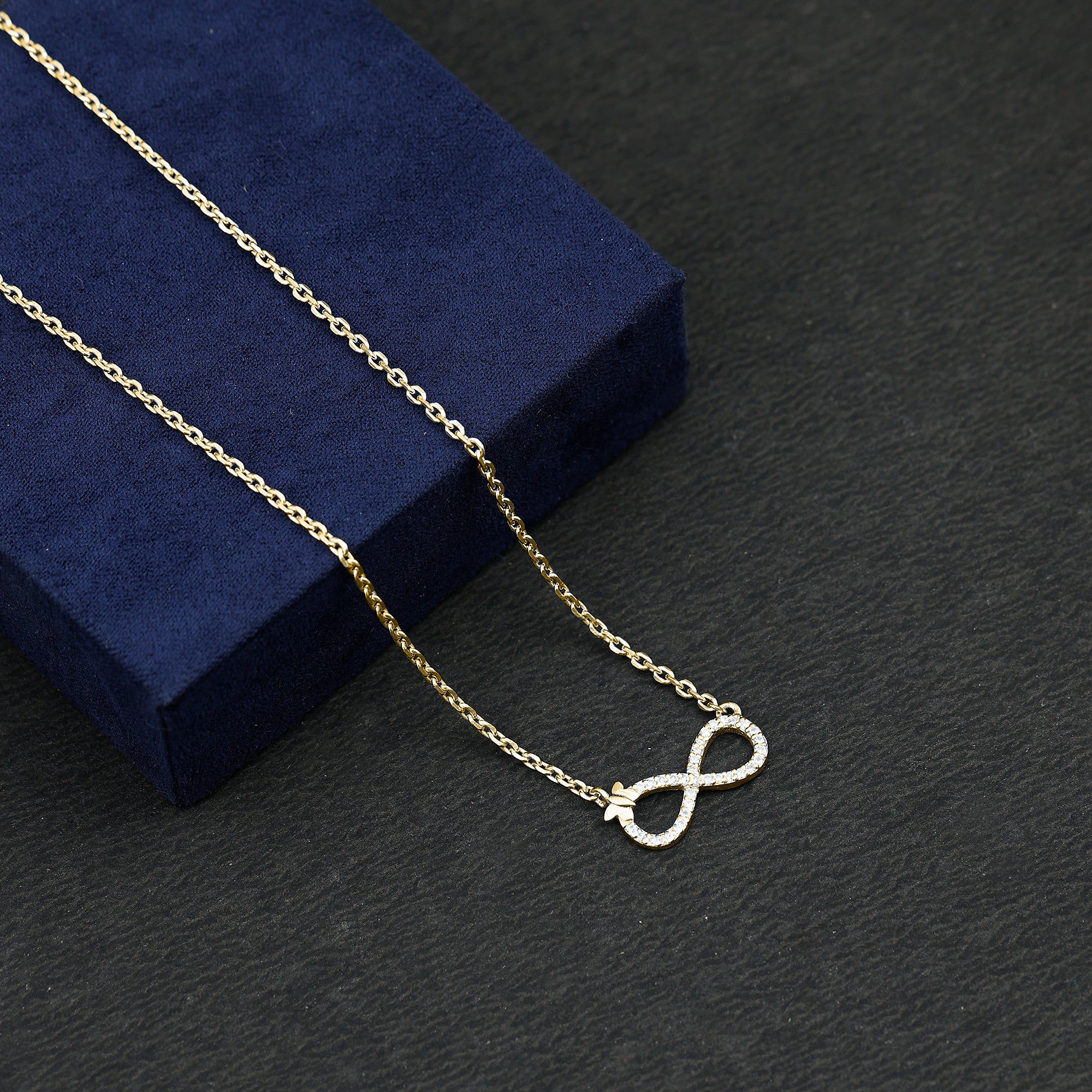 They say beauty lies in the details, and this Diamond Infinity Necklace is proof that elegance and meaning can blend effortlessly into one perfect design. Handcrafted in top notch metal, the infinity symbol is adorned with a shimmering row of lab grown diamond, adding a luxurious sparkle to the timeless design. A delicate butterfly motif sits at one side of the infinity loop, symbolizing new beginnings and the beauty of change. This Diamond Necklace is a classic and designer piece of jewelry perfect for any occasion. Whether you wear it as a daily reminder of infinite possibilities or gift it to someone special, this Infinity Butterfly Necklace is designed to shine as bright as the moments it represents.