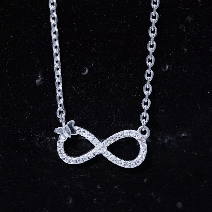 They say beauty lies in the details, and this Diamond Infinity Necklace is proof that elegance and meaning can blend effortlessly into one perfect design. Handcrafted in top notch metal, the infinity symbol is adorned with a shimmering row of lab grown diamond, adding a luxurious sparkle to the timeless design. A delicate butterfly motif sits at one side of the infinity loop, symbolizing new beginnings and the beauty of change. This Diamond Necklace is a classic and designer piece of jewelry perfect for any occasion. Whether you wear it as a daily reminder of infinite possibilities or gift it to someone special, this Infinity Butterfly Necklace is designed to shine as bright as the moments it represents.
