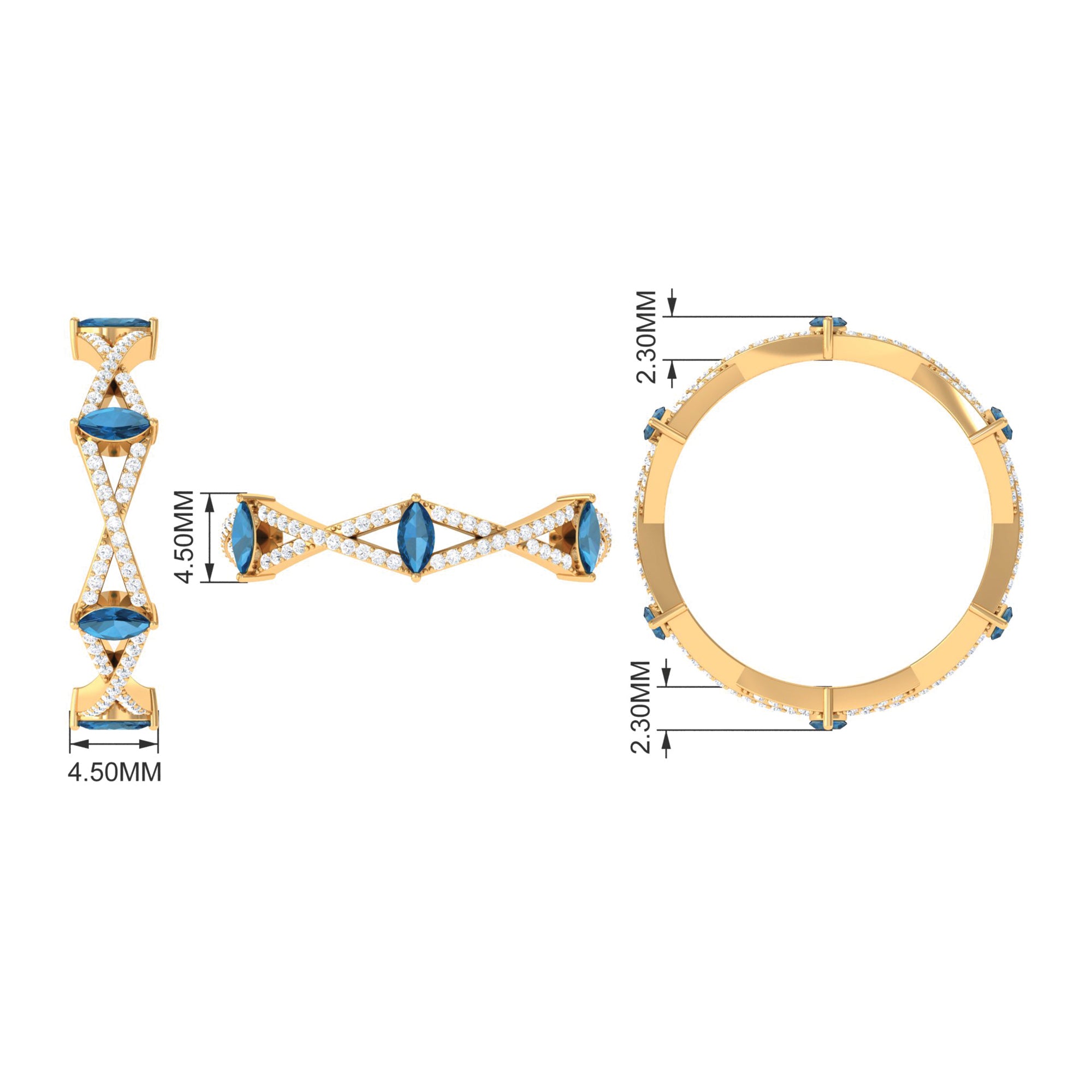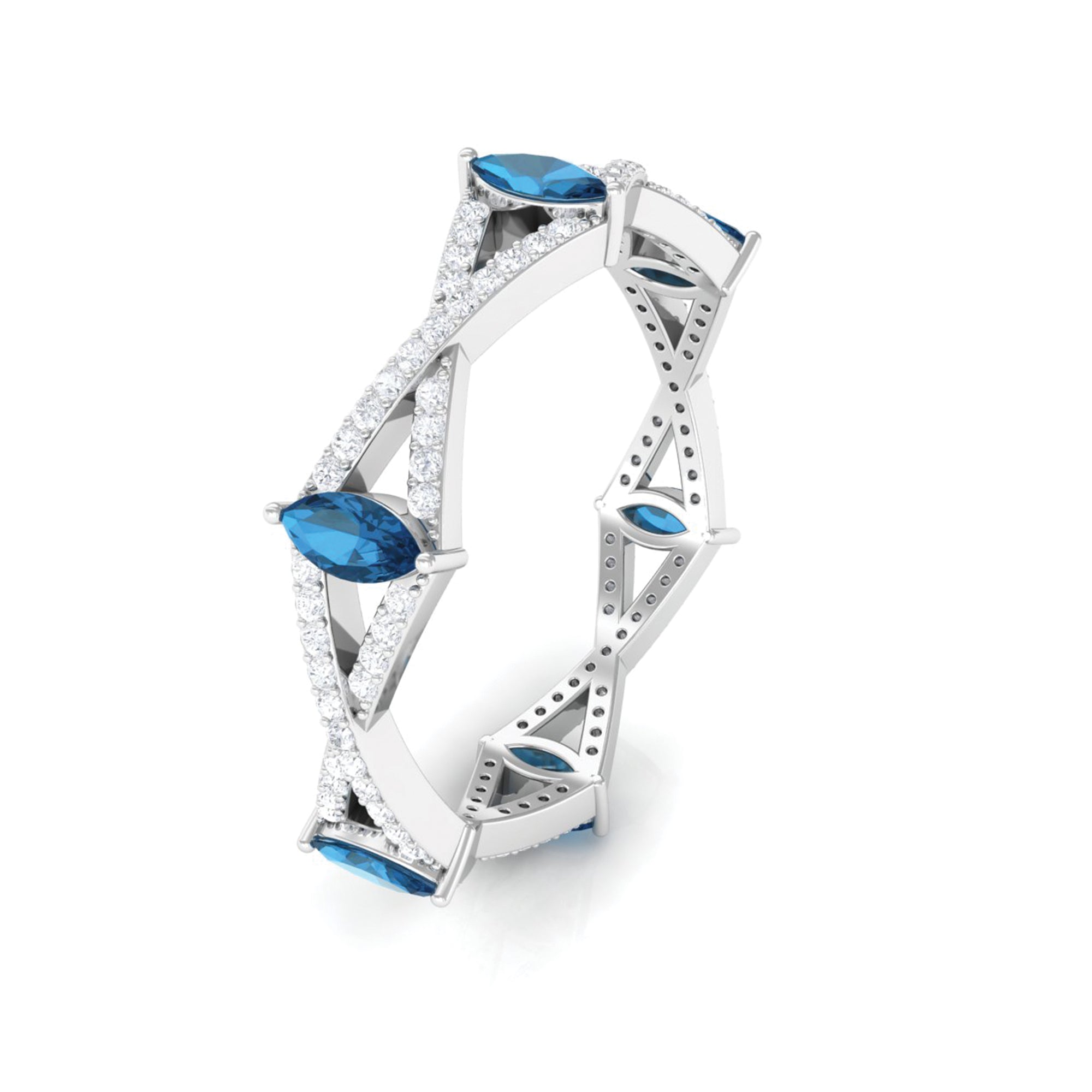 Marquise London Blue Topaz Crossover Eternity Band with Diamond