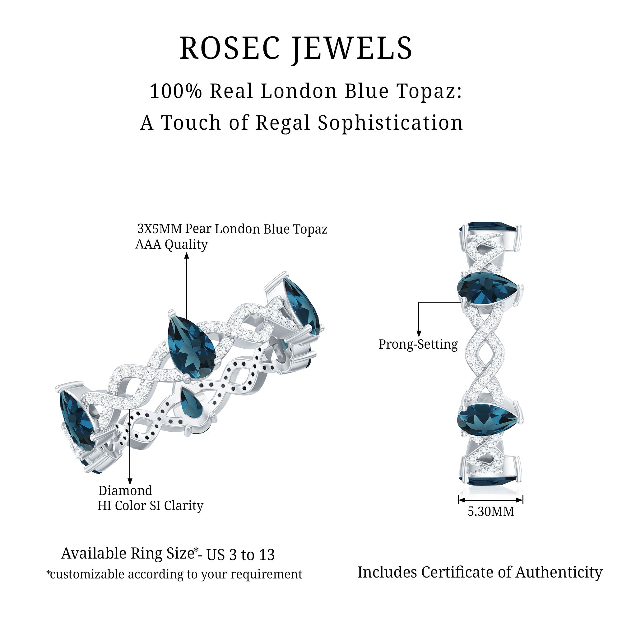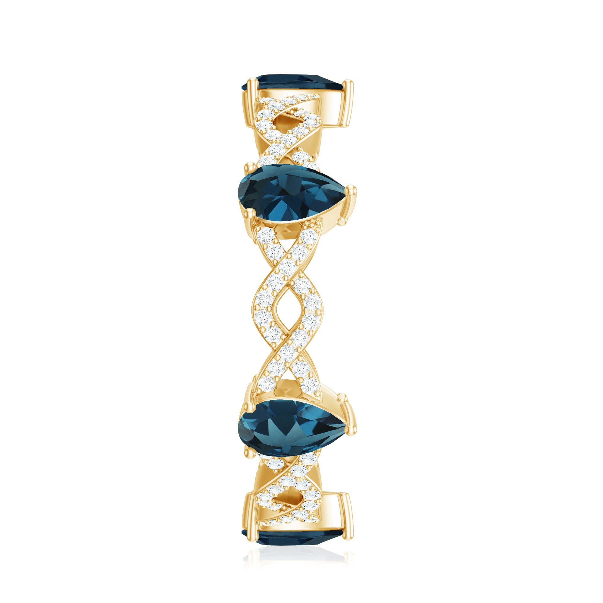 Pear Shape London Blue Topaz Crossover Eternity Band with Diamond