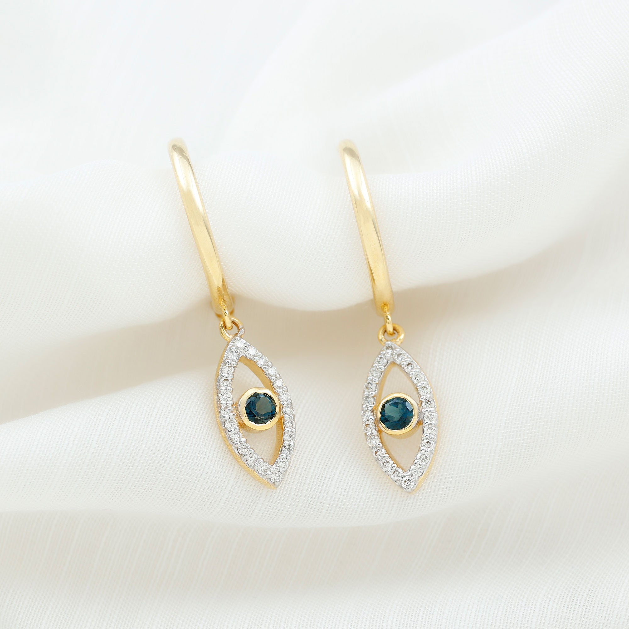 London Blue Topaz and Diamond Evil Eye Hoop Drop Earrings