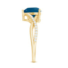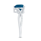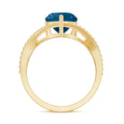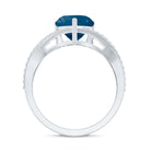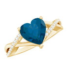 London Blue Topaz and Diamond Heart Engagement Ring in Crossover Band