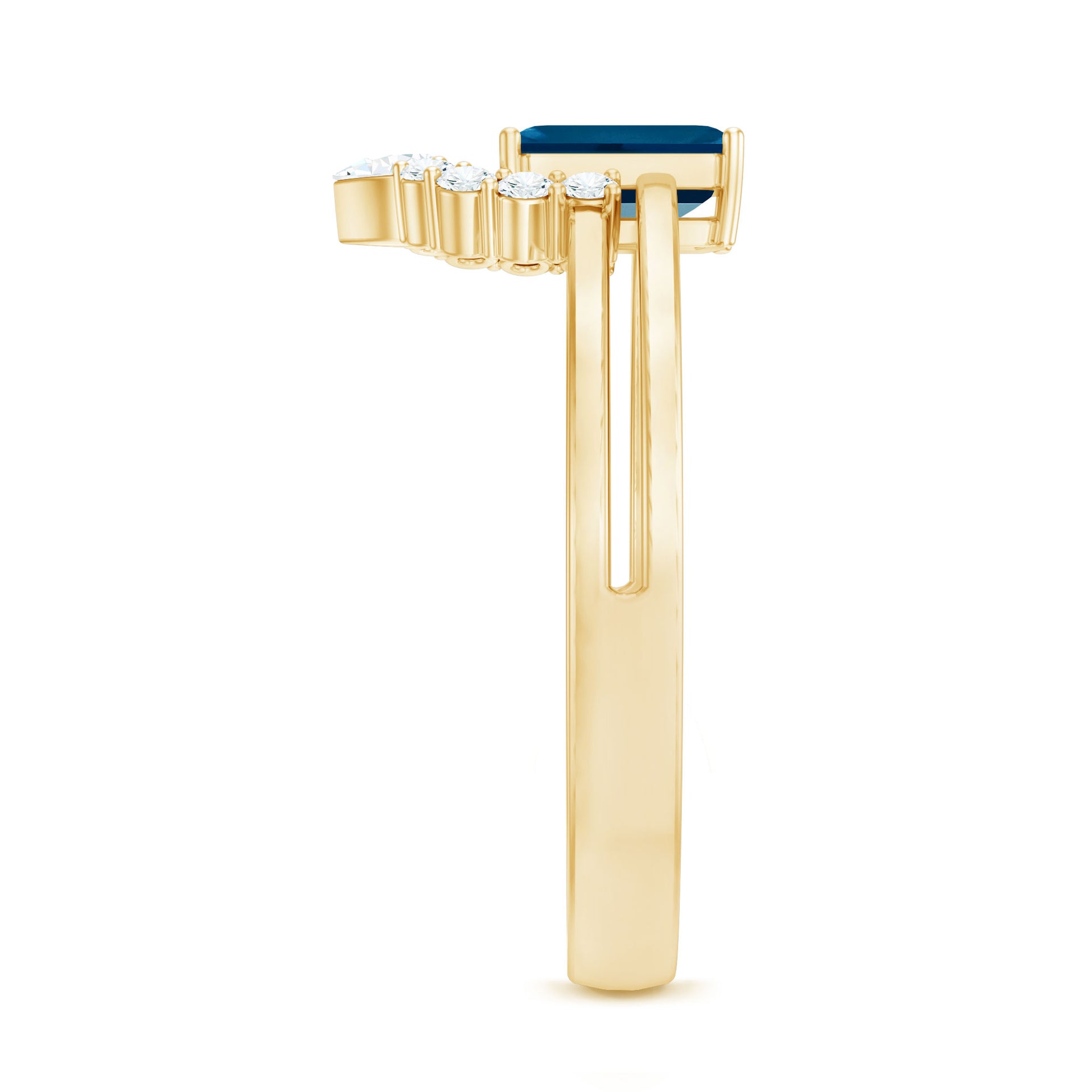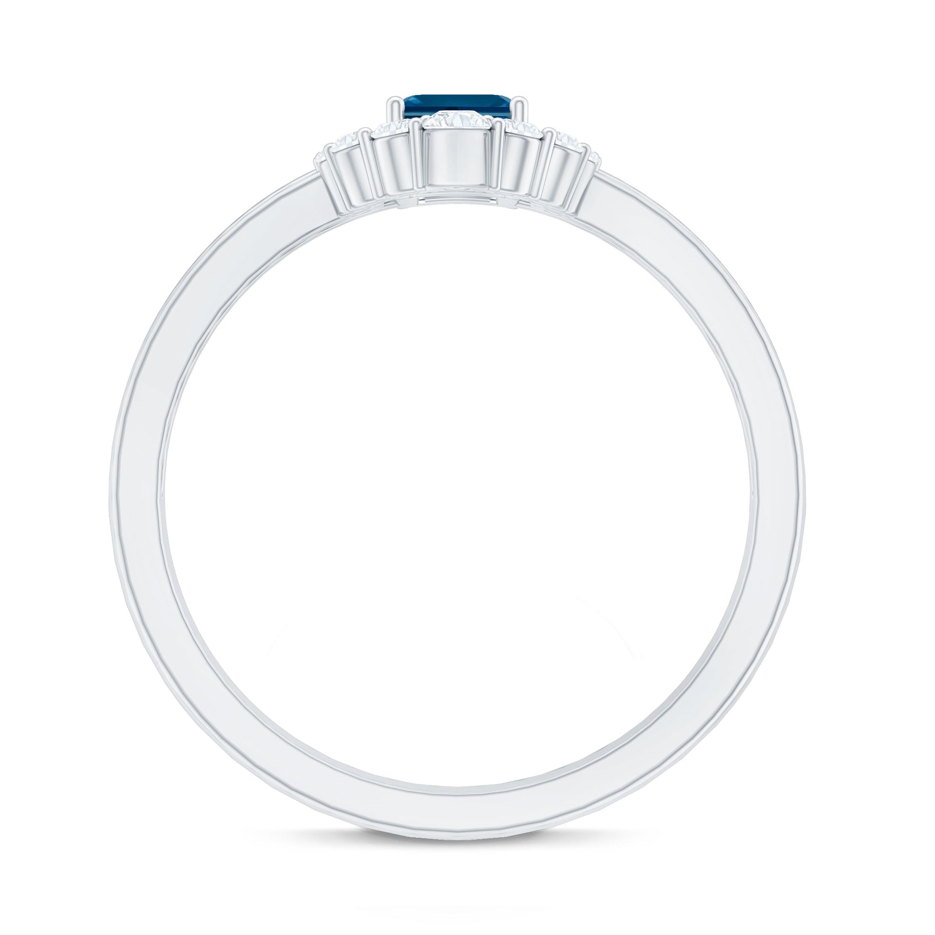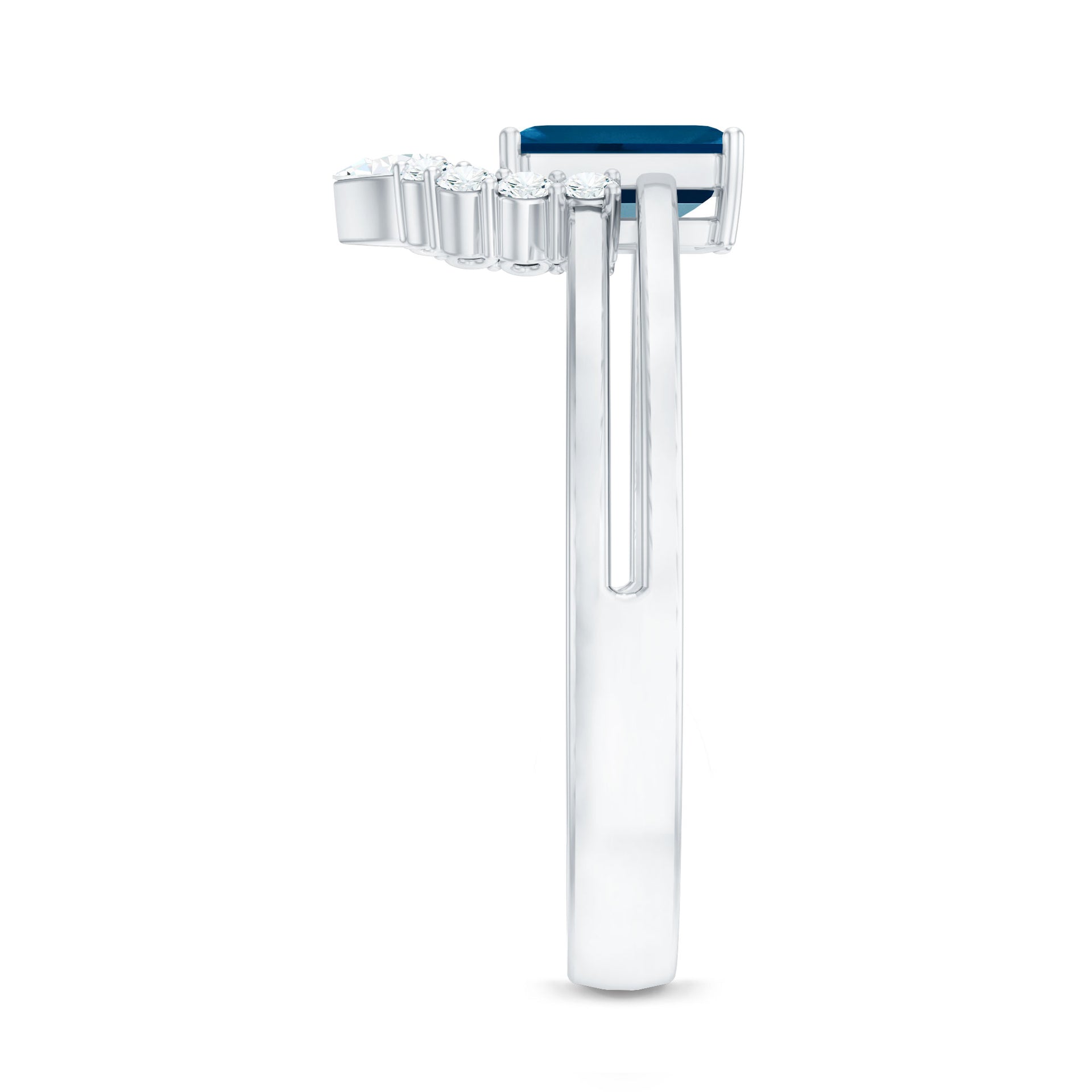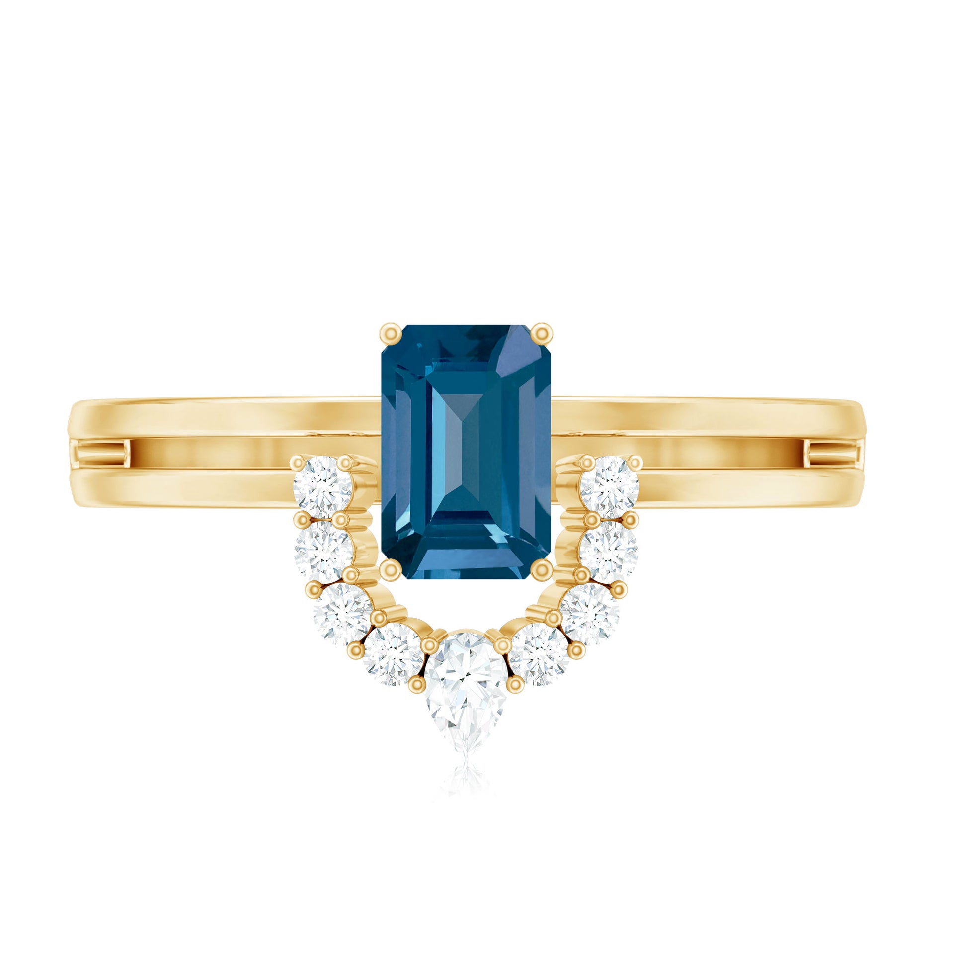 Emerald Cut London Blue Topaz Double Band Engagement Ring with Diamond